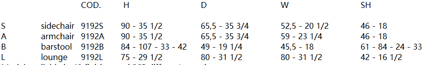 Model available in 40 finishes and 265 different coverings