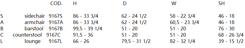 Model available in 40 finishes and 265 different coverings
