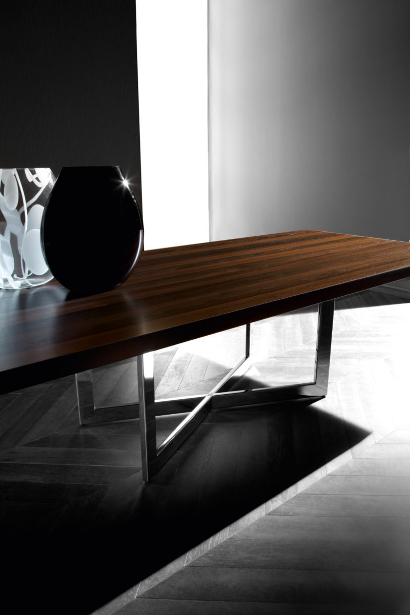 Model available in 8 different wood essences. It comes in 3 standard sizes and can be customized up to 310x120 cm