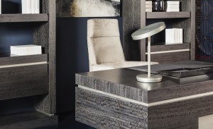 Lampada da tavolo in alluminio anodizzato con corpo luminoso orientabile, caratterizzata da linee che nella loro semplicità denotano contemporaneamente forte carattere e sobria eleganza.