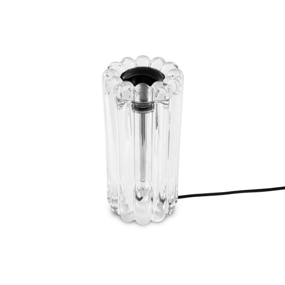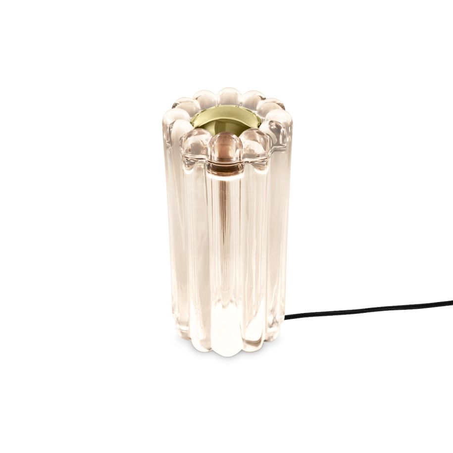 The thickest industrially Pressed glass artefacts designed and engineered to catch and refract light, and to last for ever. Press is a series of heavyweight grooved lighting, vases, bowls and candleholders made of fat, chunky coils of pure and clear transparent glass.