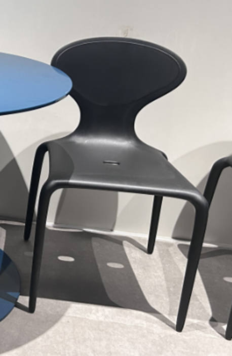 Design polisensoriale, linee da accarezzare, da leggere al tatto e da ri-elaborare continuamente. Le forme sinuose si irradiano dal telaio-struttura allo spazio circostante. Pieni e vuoti, assenze che diventano presenze nell’attraversamento della luce, del vento, del corpo. I fori dello schienale, come uno schermo poroso, creano seducenti giochi di ombre, rimando alle geometrie disegnate dai raggi solari filtrati dalle fronde degli alberi.