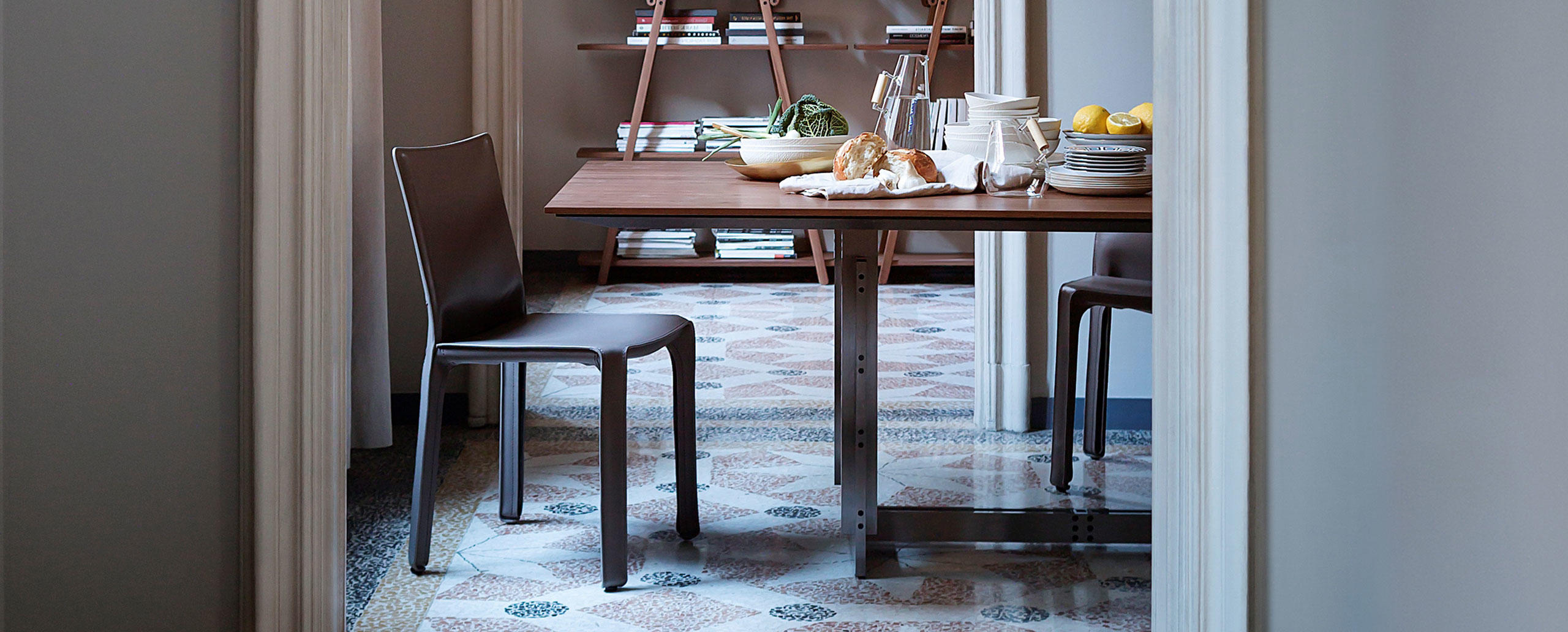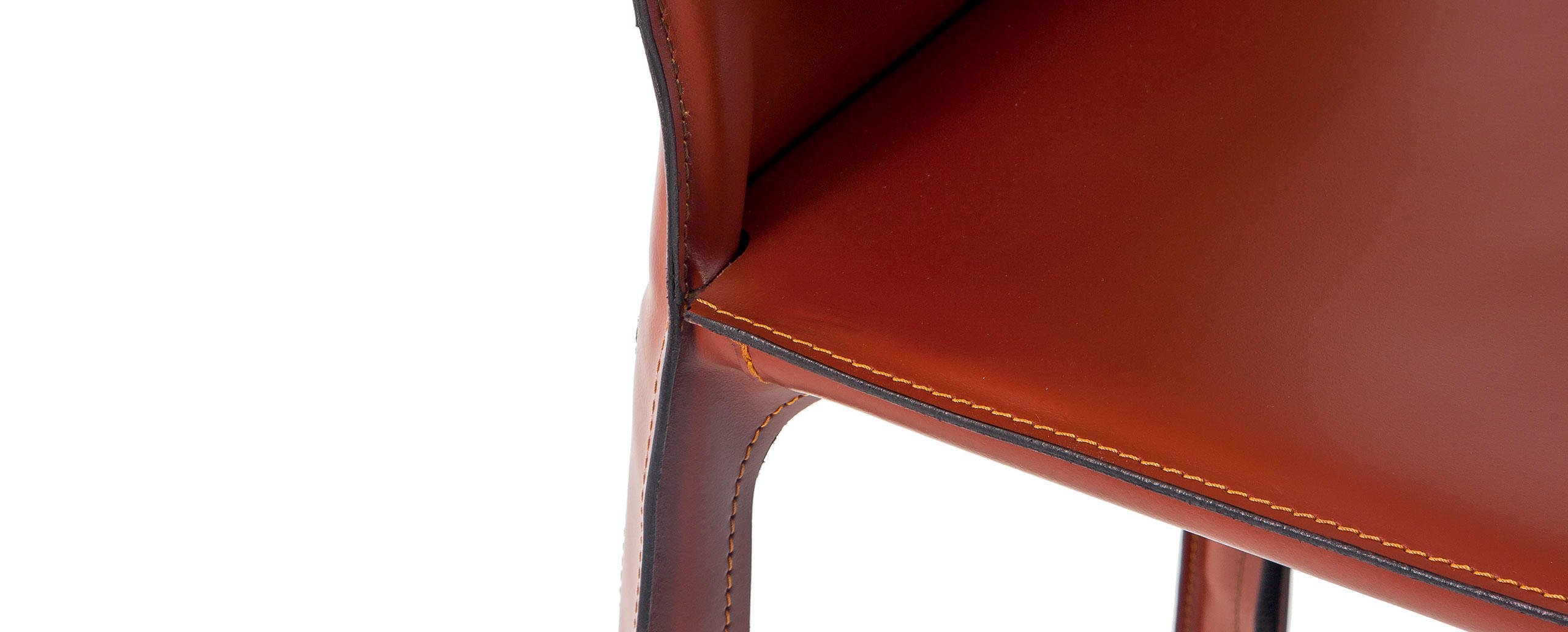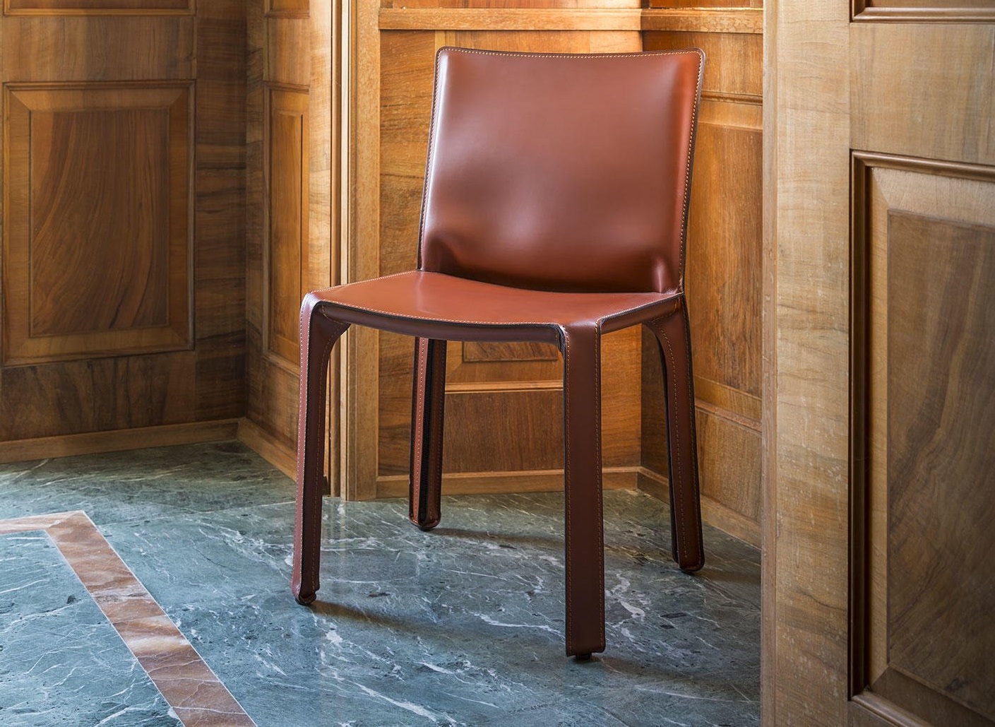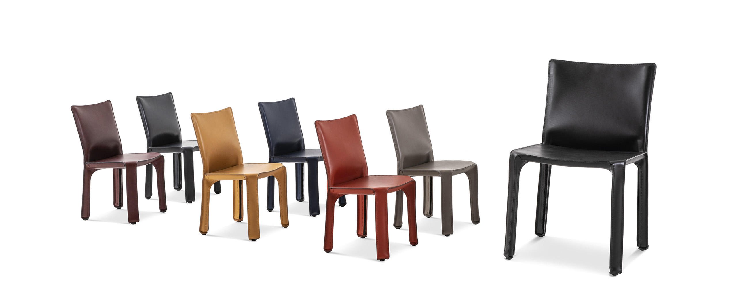 “Un nuovo genere di sedia, tutta in cuoio, oggi molto clonata”. Così Mario Bellini descrive la sedia-poltroncina Cab, best-seller ideato nell’epoca d’oro del design italiano e oggi pezzo iconico della collezione I Contemporanei. Cab è la prima sedia al mondo caratterizzata da un struttura in cuoio autoportante ispirata al rapporto tra scheletro e pelle. Il suo rivestimento è formato da 16 parti in cuoio, fustellate una ad una e successivamente sottoposte a 14 lavorazioni manuali. Le singole parti tagliate vengono infatti cucite insieme solo dopo aver subito un procedimento di scarnitura volto ad assottigliare lo spessore delle porzioni da accoppiare. Il rivestimento viene poi calzato su uno scheletro d'acciaio e chiuso con cerniere lampo come un abito sartoriale. Oltre all’ampia varietà di colori per la seduta in cuoio, la proposta include la variante in cuoio pigmentato nelle tonalità del nero, marrone e rosso bulgaro.