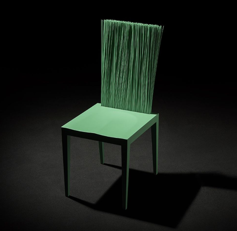 Grazie allo schienale flessibile, questa sedia stampata in poliuretano e con armatura di metallo è un punto d’unione tra rigido e flessibile. Lo schienale è formato da un ventaglio di steli di PVC che si modellano in posizione libera con l’uso.