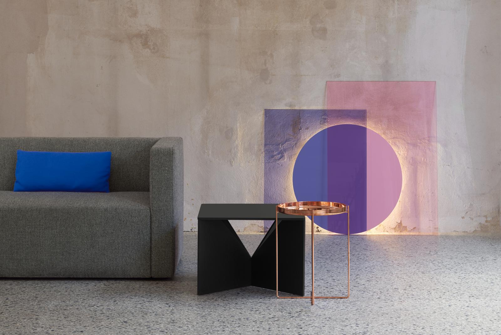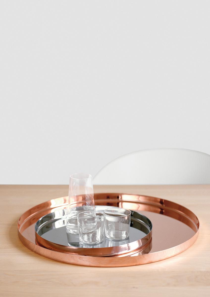 Reminiscent of ornately detailed oriental tea services, HABIBI as a tray or side table is a precious piece offering elegant possibilities for combination. The tray HABIBI in combination with the base can be used as an independent side table with generous diameters and optional heights available in polished brass, copper and stainless steel. Each piece is entirely unique, handmade and truly valuable, offering versatile use as the tray can be removed from the base and used as such on its own. Untreated by chemicals, natural oxidation processes create a beautiful patina over time, unless interrupted by applying conventional metal polishes. The surfaces are not lacquered. The endearing tray and side table HABIBI is additionally available in powder-coated aluminium in the colours signal white and jet black. The tray HABIBI is delivered as one piece whereas the side table with the base is delivered in two pieces.