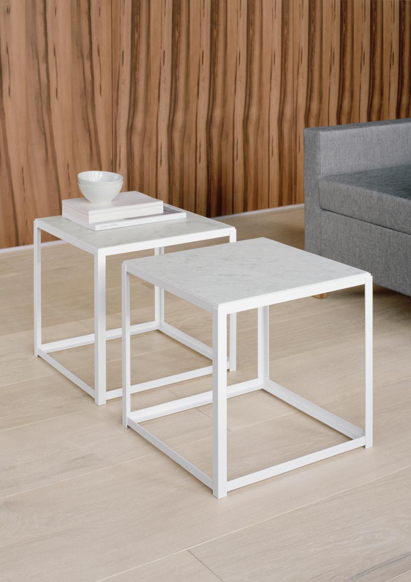 The flexible and stackable side table FORTYFORTY in powder-coated steel is a significant example of Ferdinand Kramer's fascination with variability and adaptability of multi-purpose furniture. Designed in 1945 during his time in America, the playful FORTYFORTY expresses lightness and elegance despite its strict geometrical shape. Removable and invertible trays for top and bottom of the frame in coloured steel or marble offer a multitude of possibilities and set individual accents. Stackable to up to five, the versatile character of the FORTYFORTY side table allows for an application in diverse environments, either as a stand-alone piece or also in combination with other furniture from the e15 collection. Frame and trays are delivered separately.
