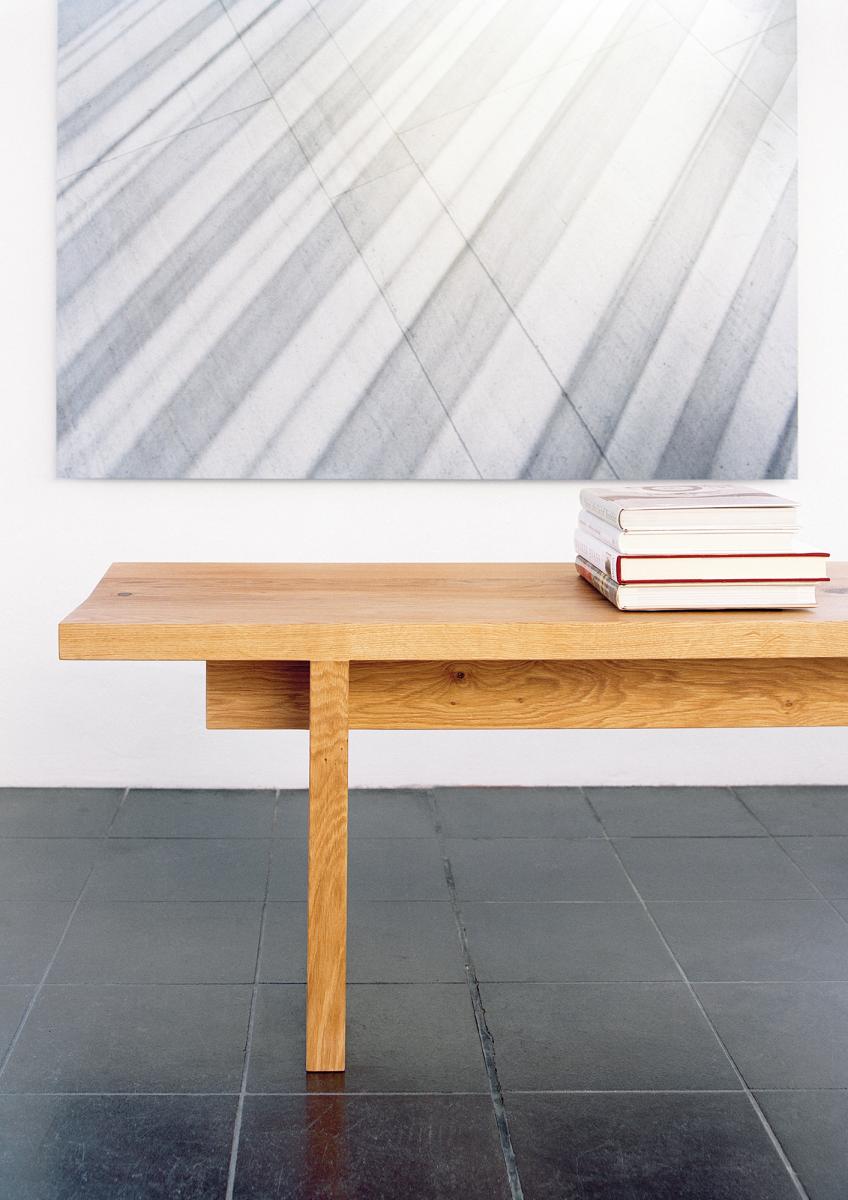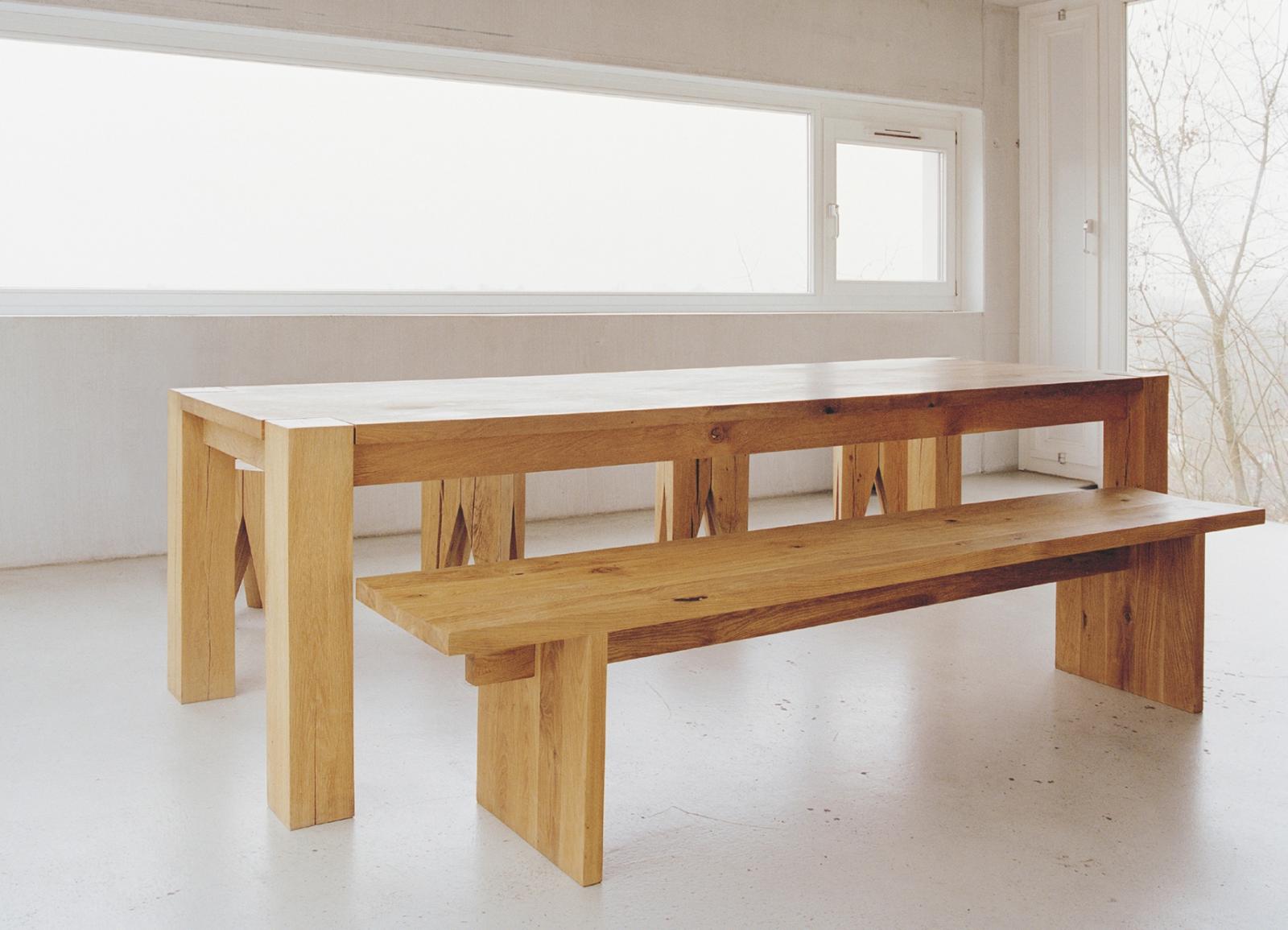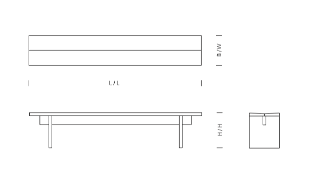 The sides of bench TARO are pushed slightly inward to enhance stability, therefore this bench can be offered in a standard length of up to 3600 MM (141 3/4 INCH). The wood is 40 MM (1 5/8 INCH) thick and the top tapers toward the middle for comfortable sitting. This bench, with its clean lines is made of three boards and works well in combination with the tables BIGFOOT? and JAPAN. TARO is delivered as on piece.