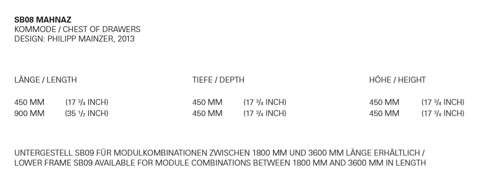Chest of drawers MAHNAZ is the wall-mounted adaption of the sideboard FATIMA. Even its body is made of solid wood, the sideboard floats effortlessly. The clear design of MAHNAZ benefits from a concept that eliminates visible frames and excludes all unnecessary and obtrusive elements. MAHNAZ can be combined the bar cabinet ARAQ and open shelf DARA.