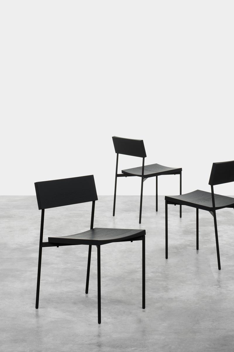 Chair HENNING with its minimal and linear silhouette unifies a shaped solid wood seat and backrest with powder-coated steel or brushed stainless steel frame. HENNING is a comfortable and elegant stackable chair that serves various interior purposes.