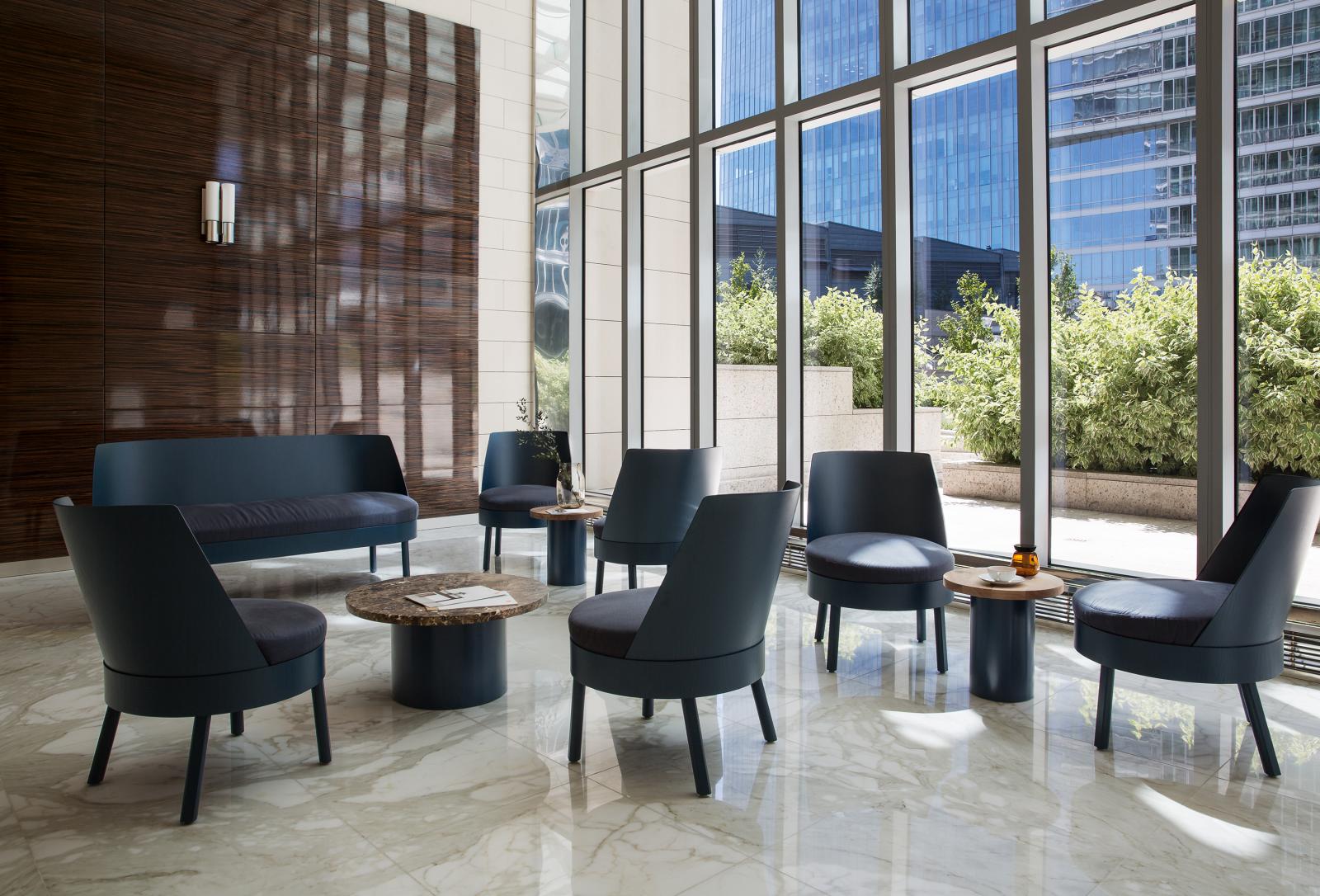 BESSY has a comfortable high back and round upholstered seat and is made from flexible oak- veneered plywood, lacquered. Reminiscent of a cocktail-lounger, the space-saving BESSY is suitable for private use as well as for contract use especially in hotel lobbies and bars. For more comfort and style, this lounge chair can be complemented with the cushion NIMA. Optionally, BESSY is also available as a stool without back rest. The upholstered seat is not fixed.