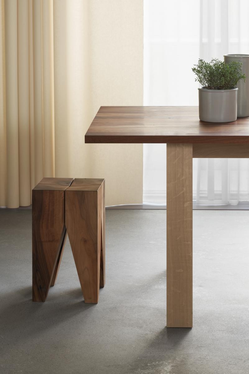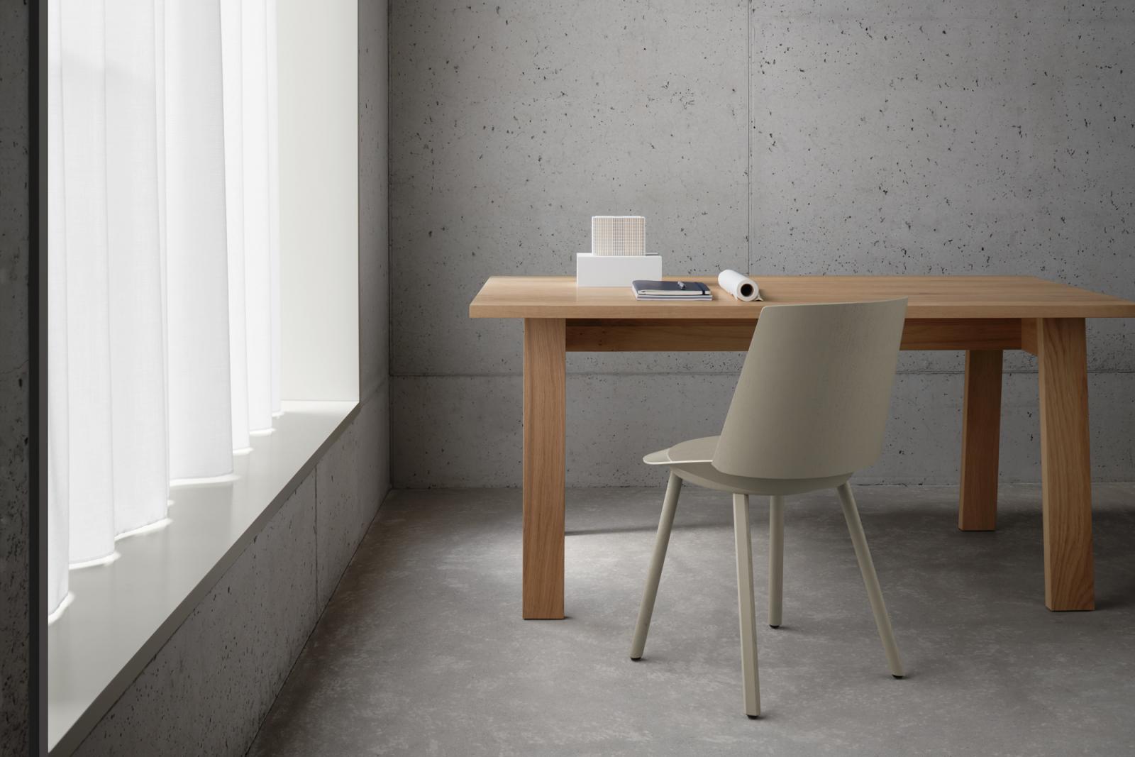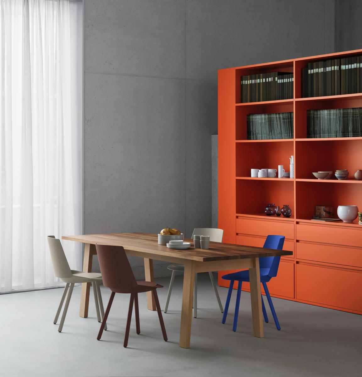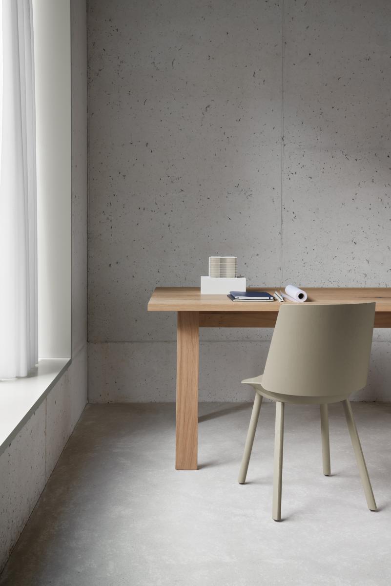 e15 continues its collaboration with David Chipperfield with table system BASIS. The simple and qualitative design of the table constructed with traditional joinery techniques showcases a range of materials and flexible solutions for living and working. Square and round table tops are available in solid wood and solid core HPL. With the modular system, any number of tables can be arranged in row. The table with double beam is also available with wire management solution.
