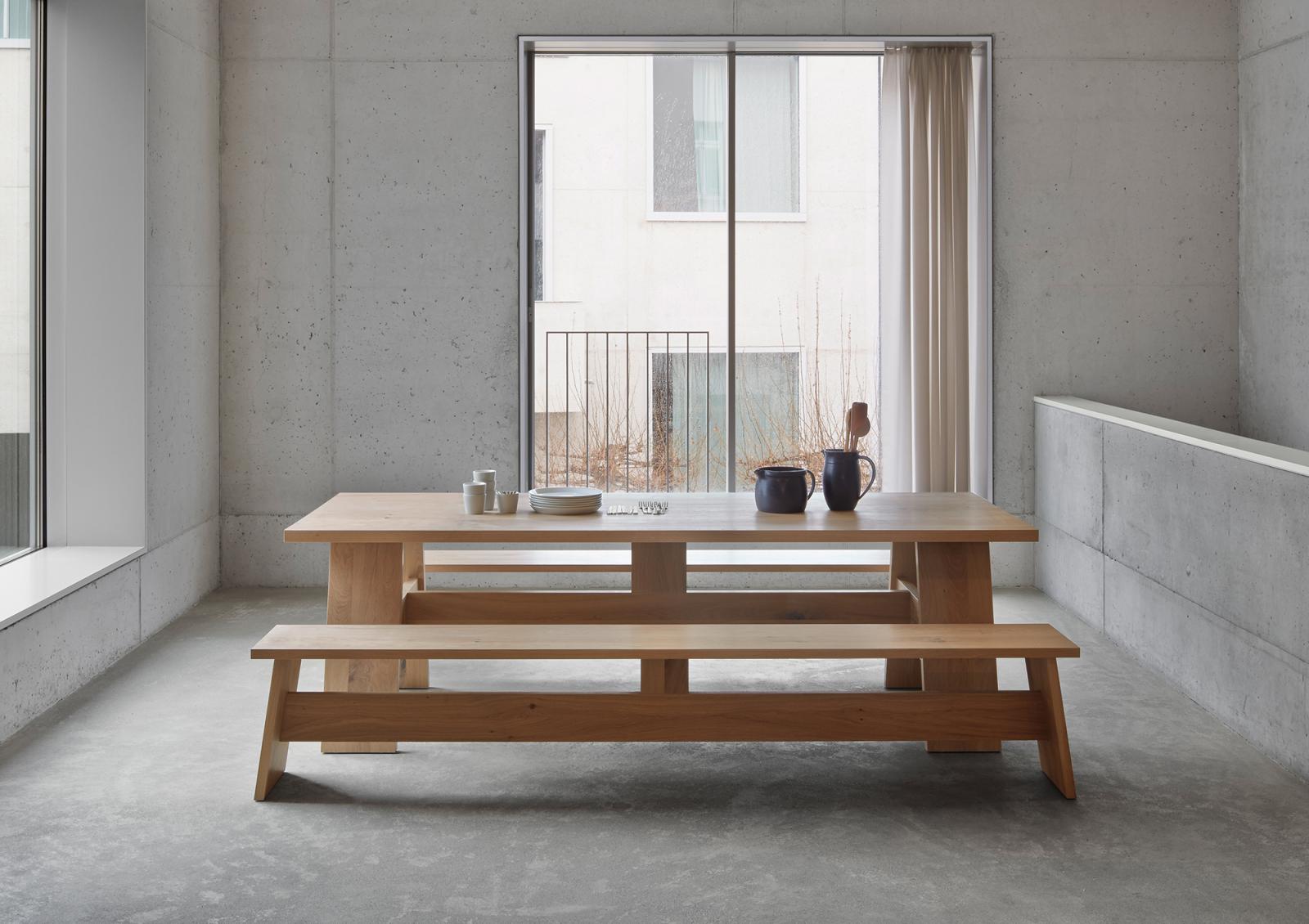 Originally conceived for an architectural project in the English countryside, table FAYLAND features the pure use of material and a clear design language, which are shared aesthetics of e15 and David Chipperfield. Made of solid wood, the constructive details are at the core of its refined and elegant design: a horizontal bar with centred support provides stability while the table ends overlap the frame, providing additional seating space. In addition to European walnut and solid oak in oiled or white pigmented surfaces.
