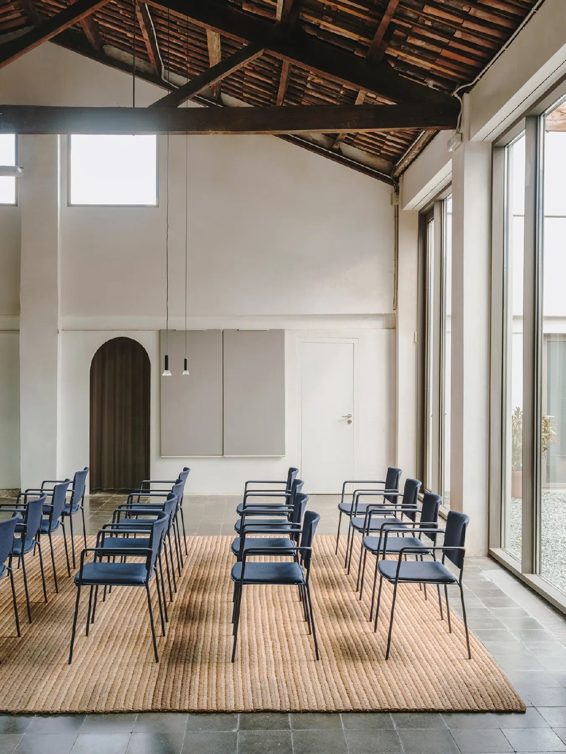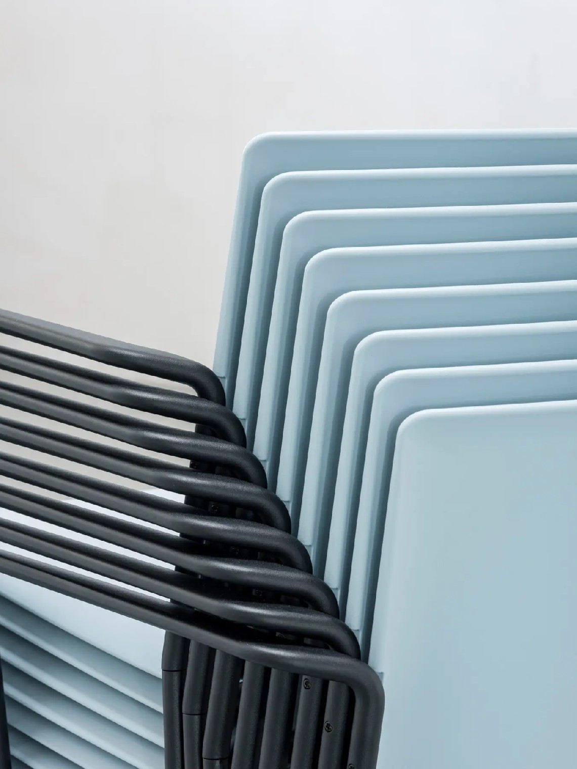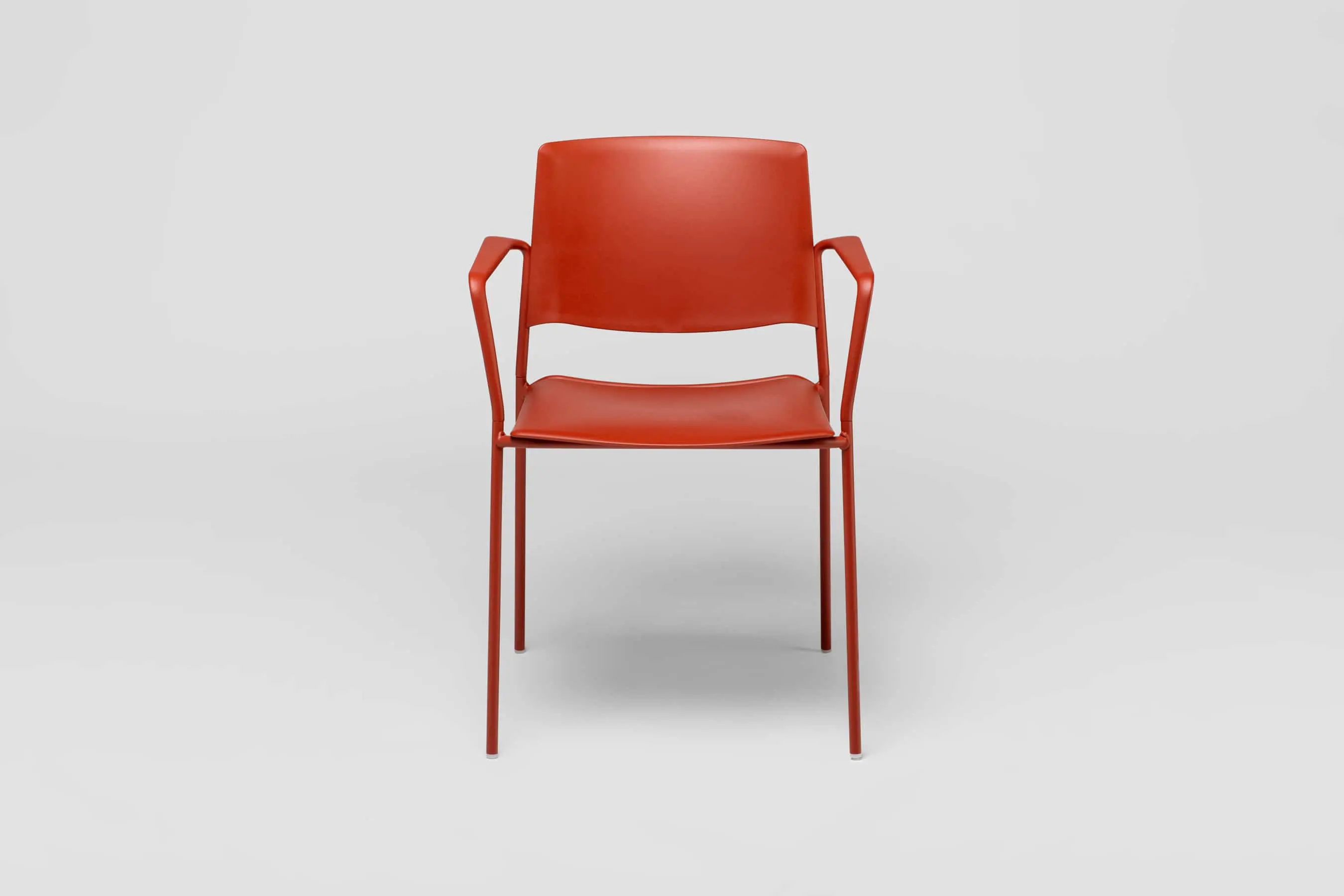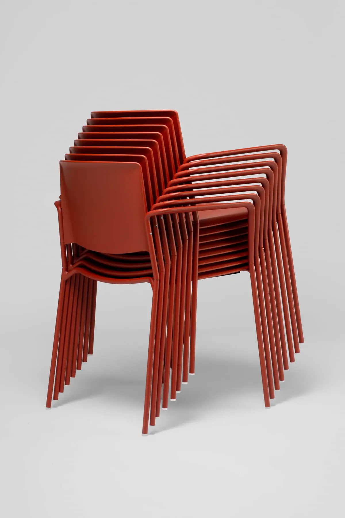 Ema 4L armchair is strong and lightweight and allows to stack up to 30 units, which makes it perfect for all kind of spaces, in special for contract sector. The 4-legged steel structure and the aluminium armrests can be chromed/polished or lacquered in any of our colours and the seat and backrest are available in polypropylene or upholstered. Besides, it has an upholstered seat pad available, which is very useful for multipurpose or crowded spaces, improving stacking by causing less friction than the full upholstery version. In this case, the stackability reaches up to 20 units on the trolley and 15 units on the floor.