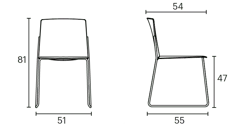 Ema chair with closed backrest is strong, lightweight and high stackable and its closed back makes cozier than the open back. This model also allows to stack up to 45 units, what makes it perfect for all kinds of spaces, in special for contract sector. The sledge steel structure can be chromed or lacquered in any of our colours and the seat and backrest are available in polypropylene or upholstered. Besides, it has an upholstered seat pad available, which is very useful for multipurpose or crowded spaces, improving stacking by causing less friction than the full upholstery version. In this case, the stackability reaches up to 20 units on the trolley and 15 units on the floor.