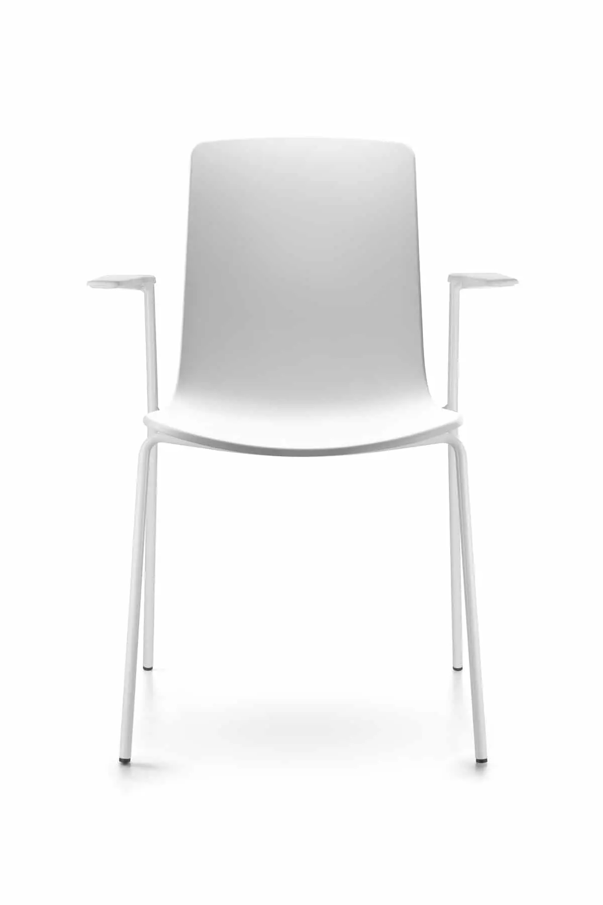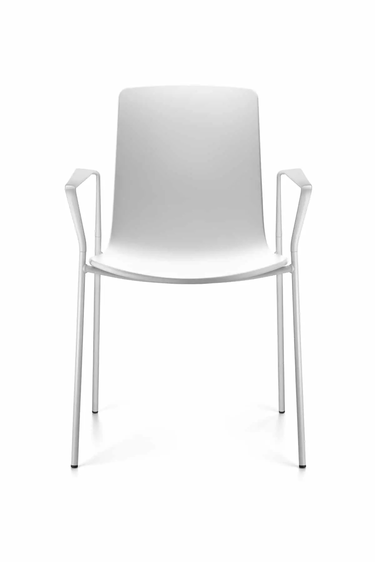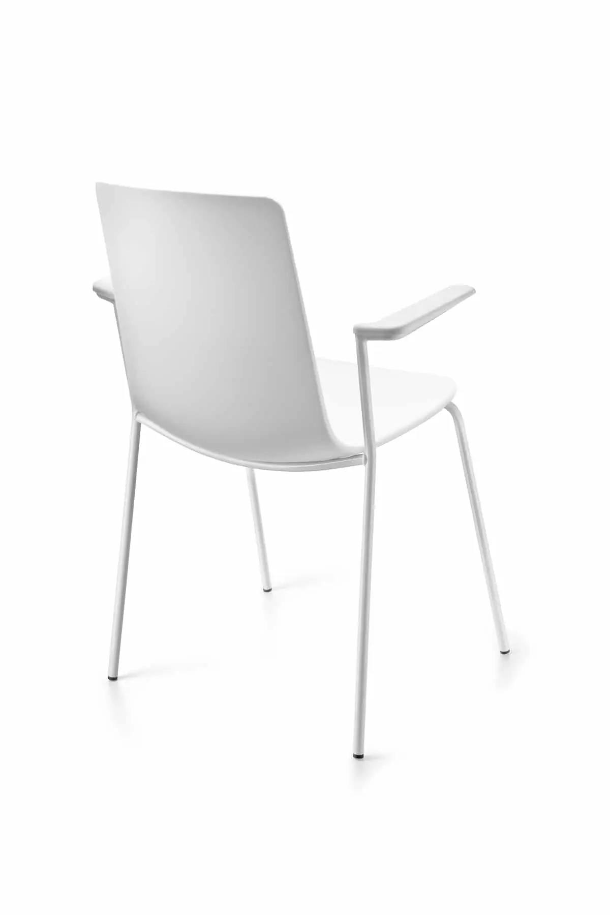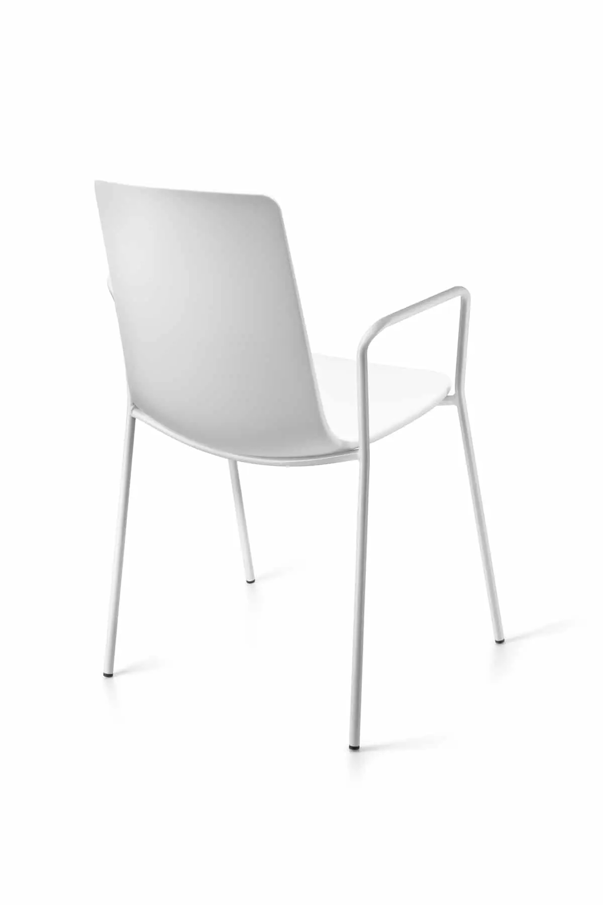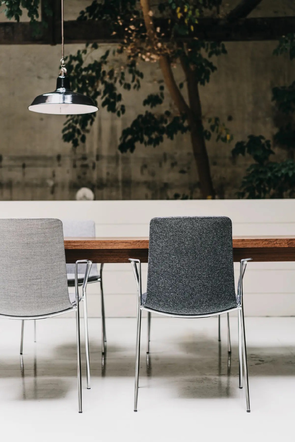 Lottus High chair has a 4-legged steel structure that comes in chrome or lacquer in any of our colours and it has a broad range of finishes available: polypropylene shell with or without polypropylene or upholstered seat pad, or fully upholstered one. Furthermore, this model has steel, aluminium or wing arms.