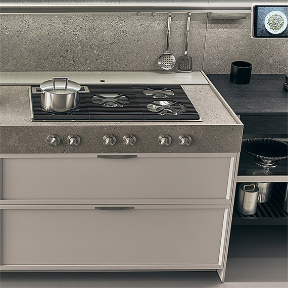 可以選擇內置型或焊接型,帶有一體式開關或設于操作臺前緣處的開關,由 Ernestomeda 開發。幾何鑄鐵柵格如同專業炊具般堅固耐用,兼具時尚感與便捷性。它們可以確保各種尺寸的炊具在爐子上保持極其穩定的狀態,堪稱實用與優雅完美結合的理想產品。