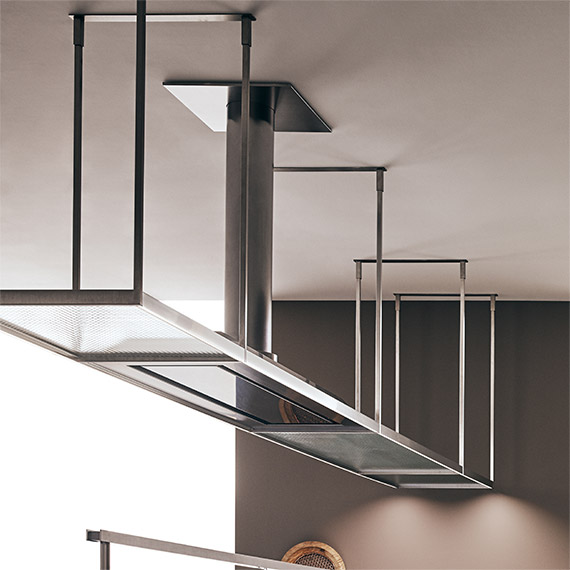 由立式鋼柱組成的模塊化開放系統(tǒng),這些鋼柱用于連接可承載玻璃擱板的水平鋁型材。可以選擇管道型和過濾型。