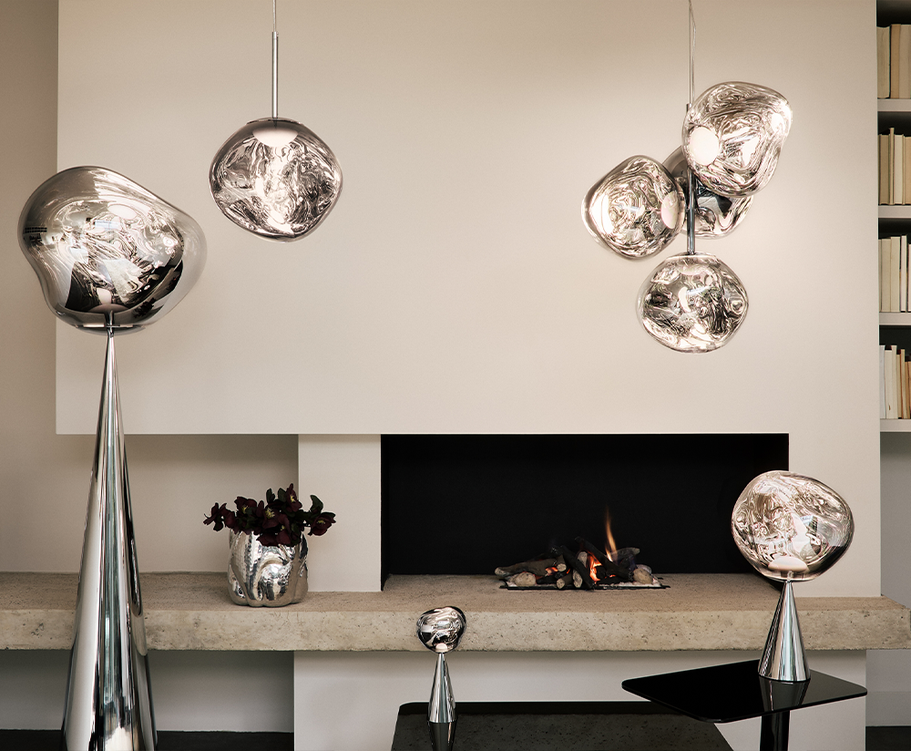 Obsessed with the idea of creating an imperfect, organic and naturalistic lighting object, Melt was created in collaboration with FRONT – a Swedish design collective. Melt is evocative of molten glass, the interior of a melting glacier, or images of deep space.