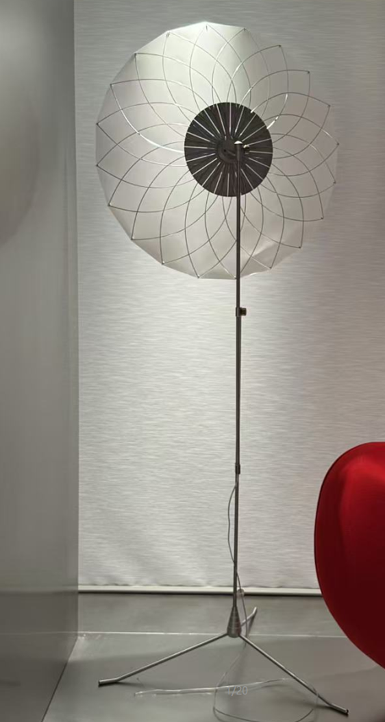 “What distinguishes a lamp from a light source?” is the question that initially triggered Rick Tegelaar to imagine and create the Filigree Floorlamp. Thanks to an elegant and dainty network of fine wires, that reminds us of delicate filigree jewelry, the translucent screen protecting the powerful LED light at the heart of the lamp is held under tension, distributing a soft light glow evenly across the room. When pointed towards a wall or ceiling, with the ornamental filigree flower structure facing us, the lamp projects a playful network of shadows to mesmerize and entertain.