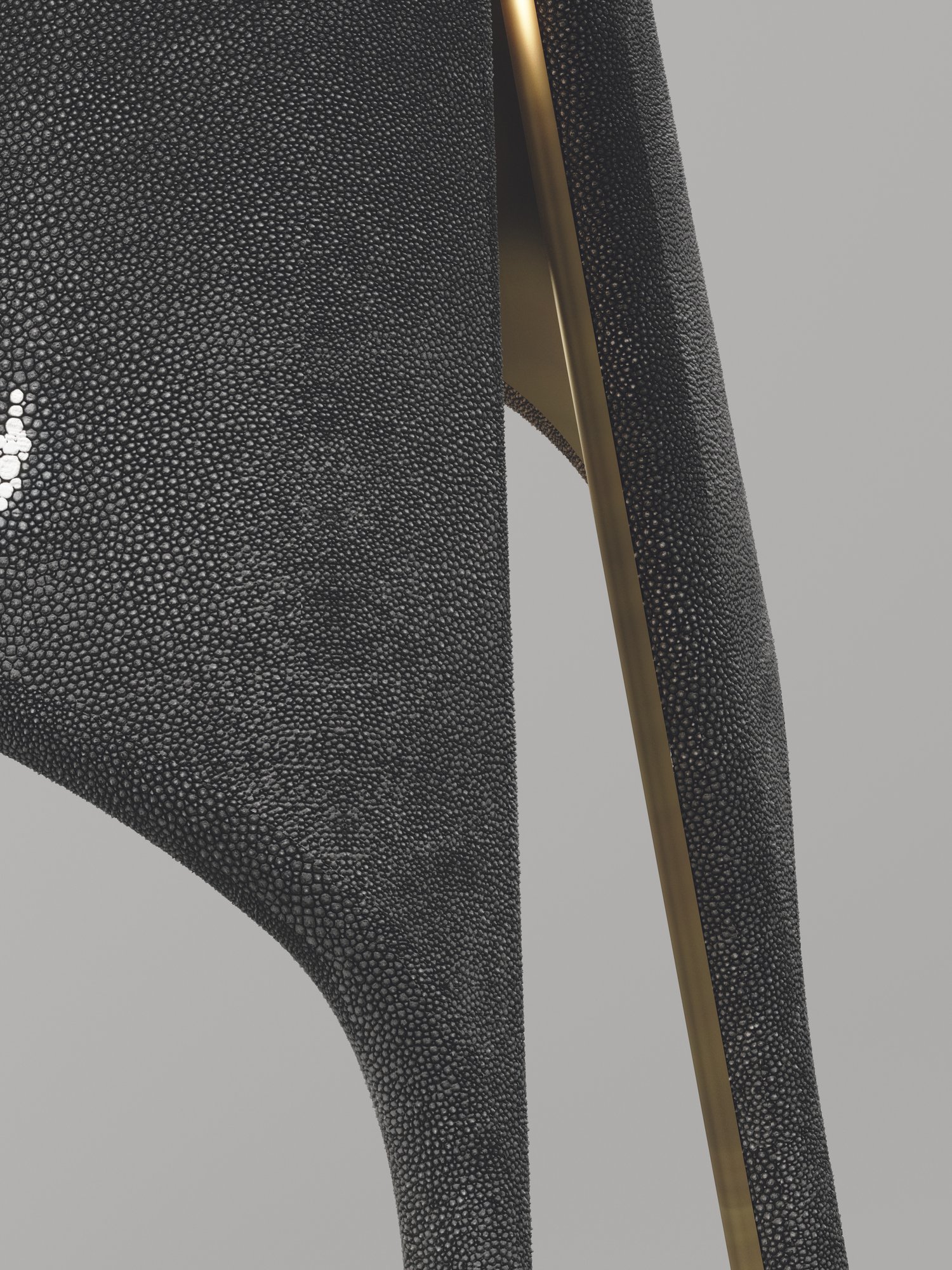 The piece is inlaid in a mixture of cream shagreen and bronze patina brass.