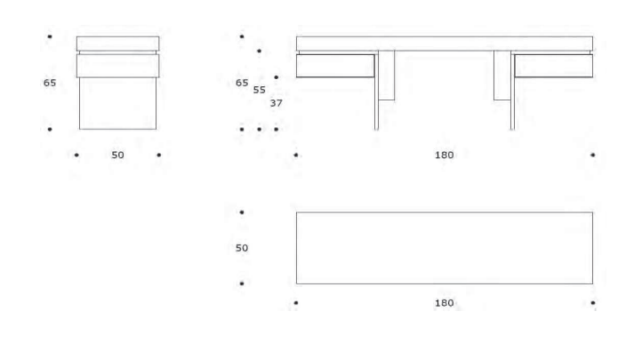 Dimensioni: larghezza 180 cm, altezza 65 cm, profondità 50 cm