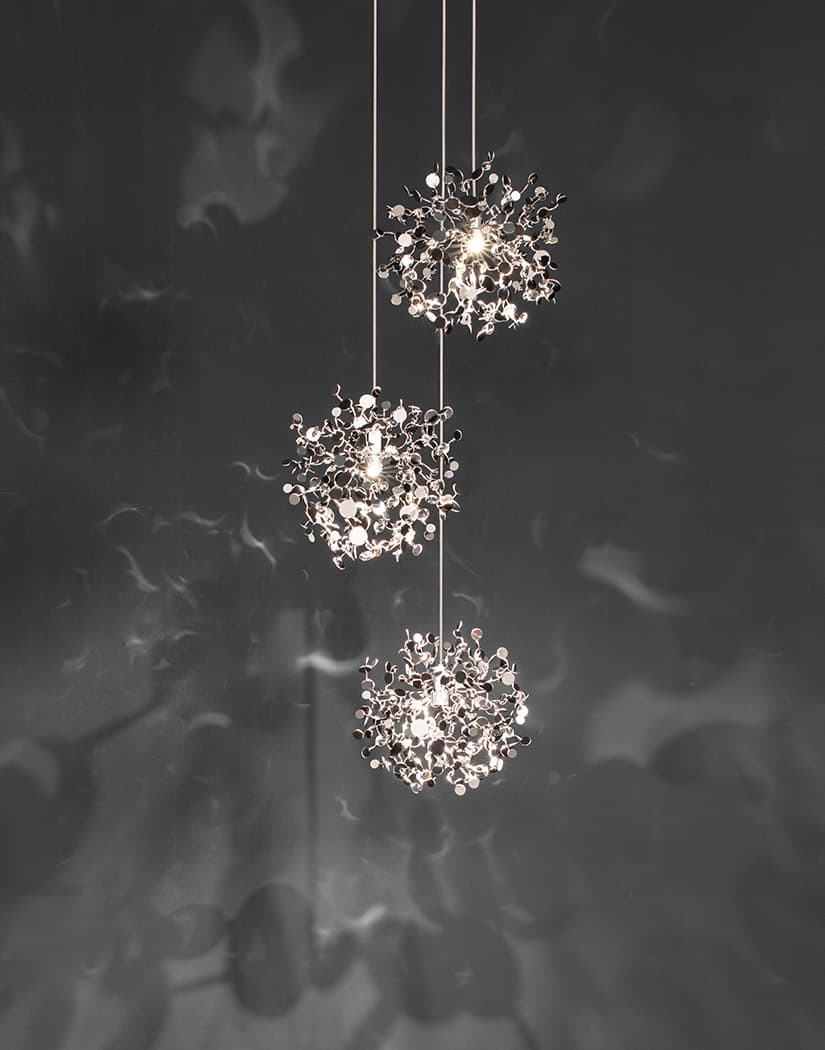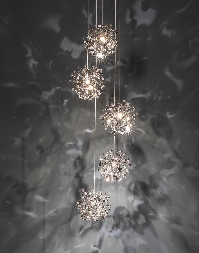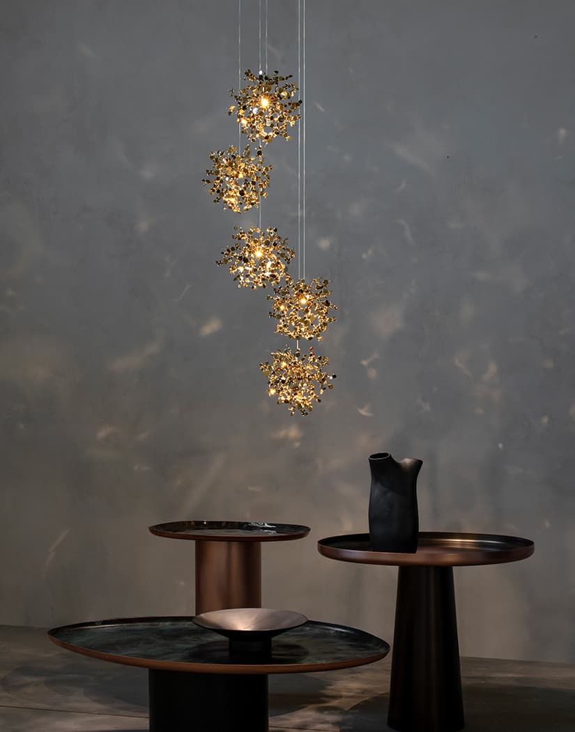 Terzani design team can work with you to develop a bespoke Argent, mon bijou design that fits your project including these options: wire length, finish, cluster design.