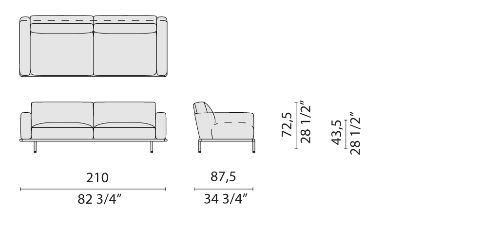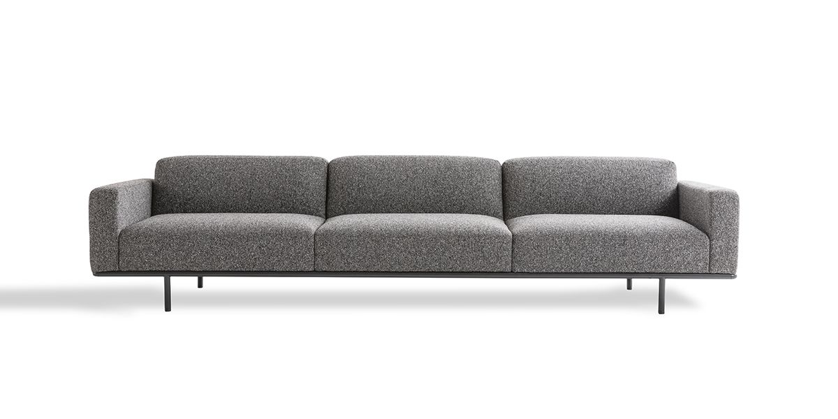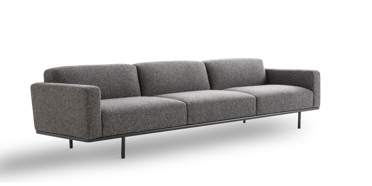 The multiple finishes of the slender metallic base and the ample upholstery selection (which includes fabric, leather and eco leather) allow for a highly customized collection that is equally versatile in appearance and destination. The light and minimal design – though undisputedly solid and resistant – makes Cap Ferrat sofa the ideal choice for domestic as well as high-traffic Contract settings.