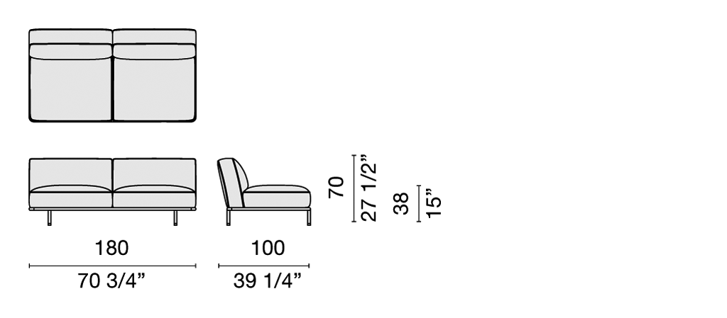 The elegance of the sofas is emphasized by the arm rests, trimmed with double stitching and gros-grain and equipped with concealed zippers. The loose pillows, with detachable covers in leather and fabric, give the collection a hint of relaxed informality which is also reflected in the slender tubular metal structure, studied to make the seats appear extremely light.