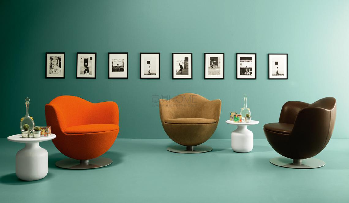This armchair is so versatile and richly significant that it can tastefully accent domestic settings and make a stylish statement in business environments alike. Marcel Wanders and Cappellini propose fixed upholstery, a fibreglass and resin shell, polyurethane foam padding on the seat and backrest, and a metal base finished with powder varnished with a natural aluminium hue. The upholstery is available in the fabrics and leathers of the collection.