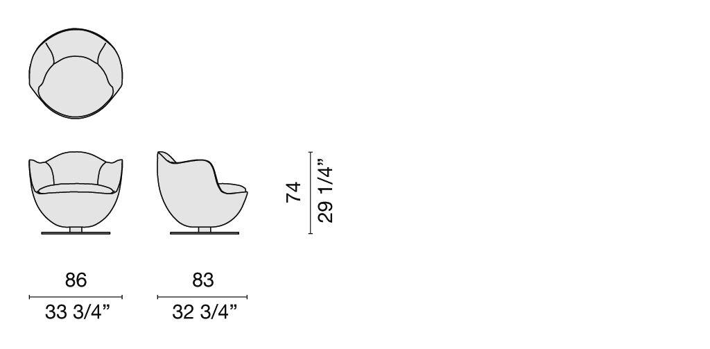 Charming at first glance: the Dalia armchair by Marcel Wanders is a floral embrace whose sensual curves capture the soul in poetic suspense. An iconic element of design, with a contemporary appeal and moderate dimensions, this armchair offers optimal comfort, with padding placed above a swivelling base (also available with a return mechanism).