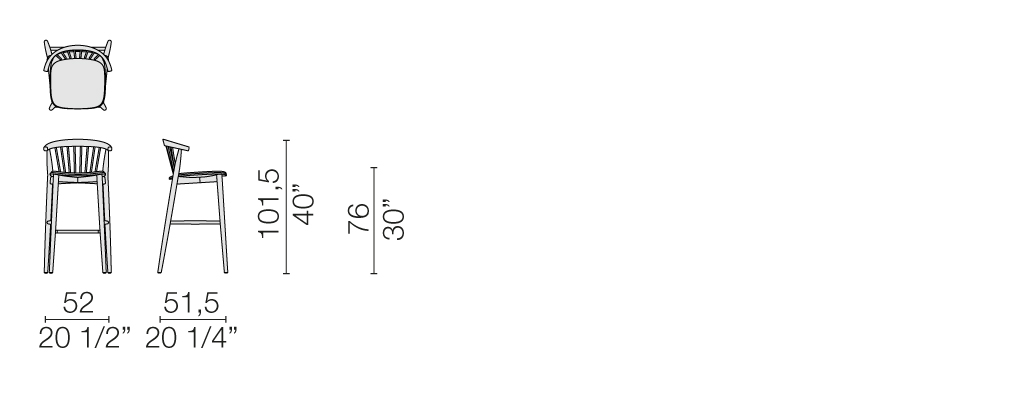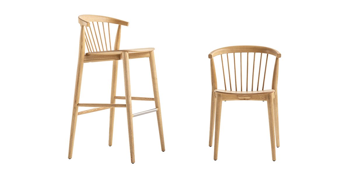 The result of a contemporary re-interpretation of the timeless charm of Windsor-style chairs: Newood chairs are available in a range that includes the Newood Stool.
