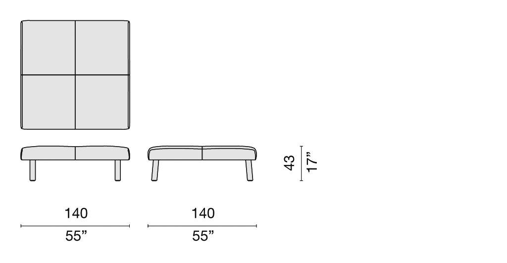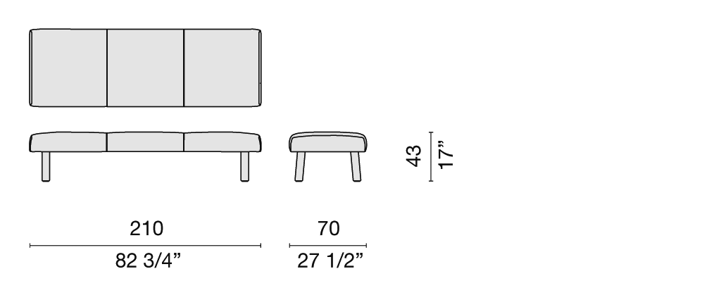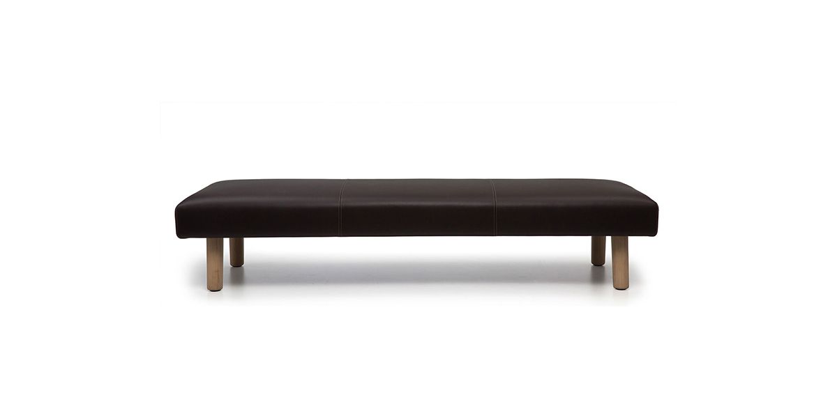 Simple and linear, Monforte has a structure made of poplar plywood, padded with multi-density polyurethane foam, with massive natural turned oak legs. The Monforte bench is available in two different shapes and sizes; the cover is fixed and can be made of leather with beige stitching.