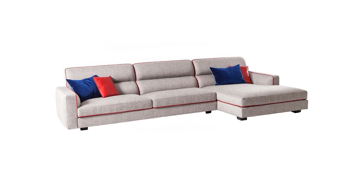 The seating system is composed of two and three-seat sofas, a chaise longue, corner and end units. Hot Palm Springs is available in a refined version trimmed with fabric or leather: a detail that delineates the shape of the seats and emphasizes the inner edge.