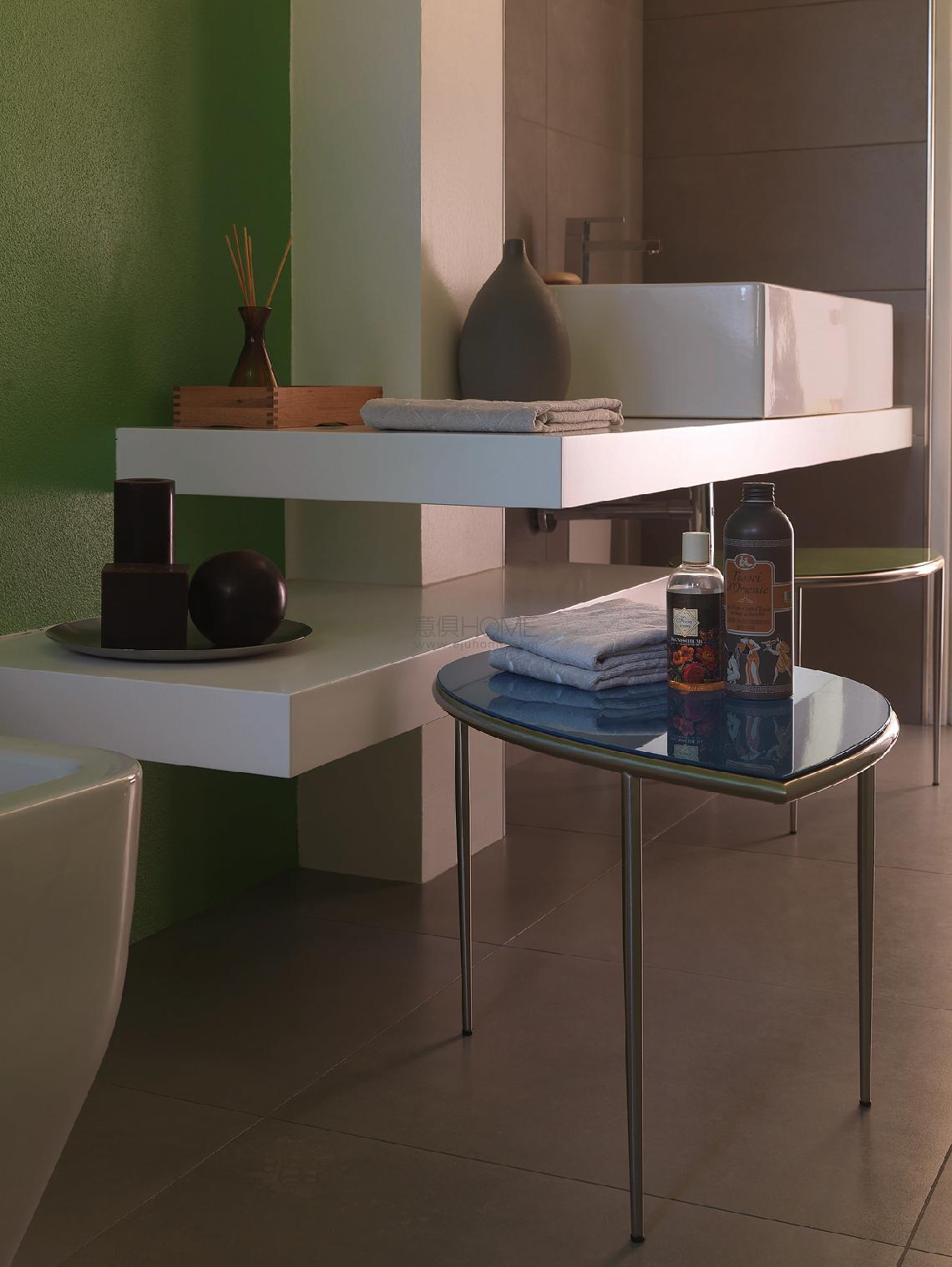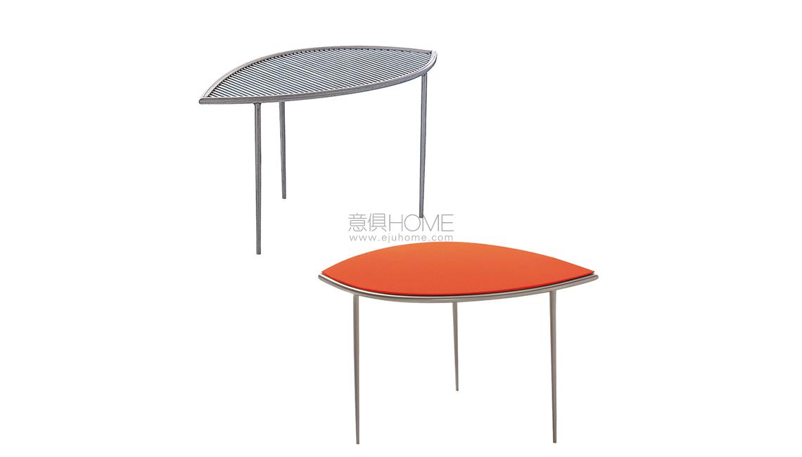 The structure of the Rhus bench is made of metal with a satined nickel finish and the glossy lacquered wooden top is available in all the colours of the collection.
