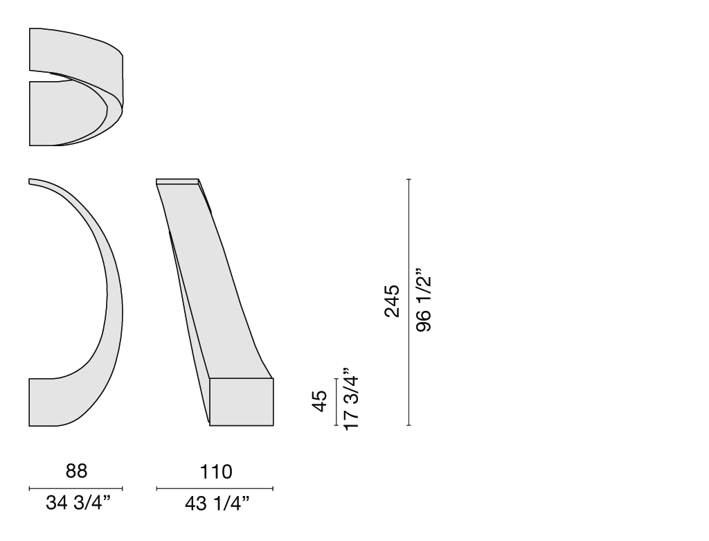 The sectional And sofa winds around a large scale structure made of moulded polyurethane, with a metal frame and end caps made of upholstered poplar plywood. Endlessly composable, the modules of the sofa envisioned by Fabio Novembre are connected with external hooks made of satined aluminium with fixed upholstery in the fabrics and leathers from the collection. The And sofa can also be fastened to the ground with the provided mounting kit, or simply balanced on the custom metal plates.