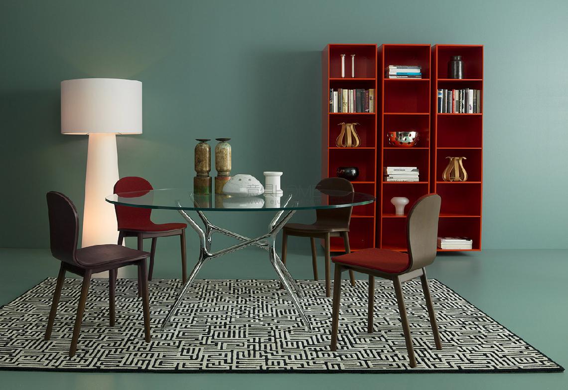 Easy to assemble and suitable for both residential and contract settings, the Branch Table is compact during transport. The table top is available in several versions: extra-light glass; matte lacquered in the colours from the collection; wood (oak with a natural or wengé finish, black canaletto walnut). The base comes with a matte finish, in white, anthracite or mud.