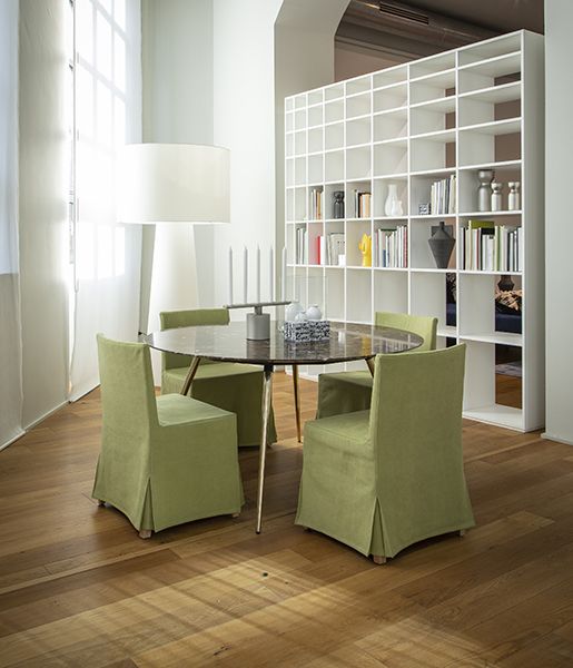 The stylistic purity of the Hard Dress chair by Piero Lissoni invites multiple interpretations. For a more solemn and discrete version, with or without armrests, the piece can be upholstered with a removable cover with a traditional inverted pleat, in a selection of the fabrics from the collection.