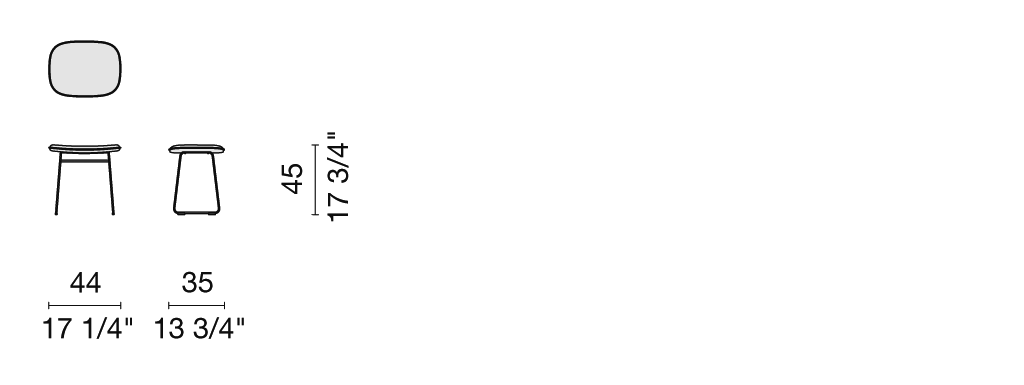 Suitable for diverse settings, from cafés to restaurants or informal lounges, the seat of this stool is available in ash wood with a bleached, black-stained or wengé finish. Alternatively, it can be padded with polyurethane foam with fixed upholstery in a selection of fabrics or leathers in the collection. The base is made of stainless steel with either a satined or matte-lacquered finish, in white, mud or anthracite.