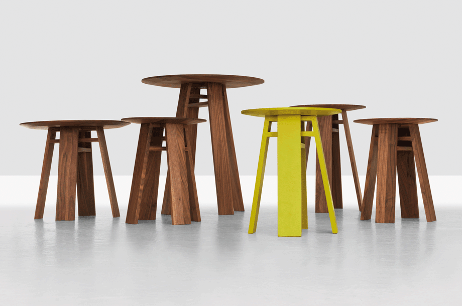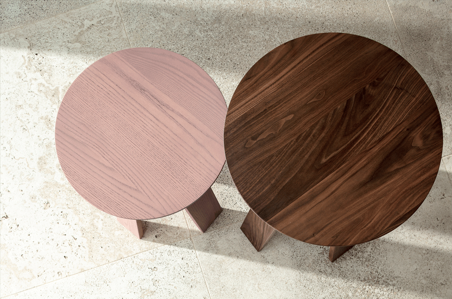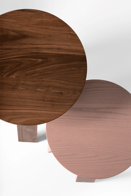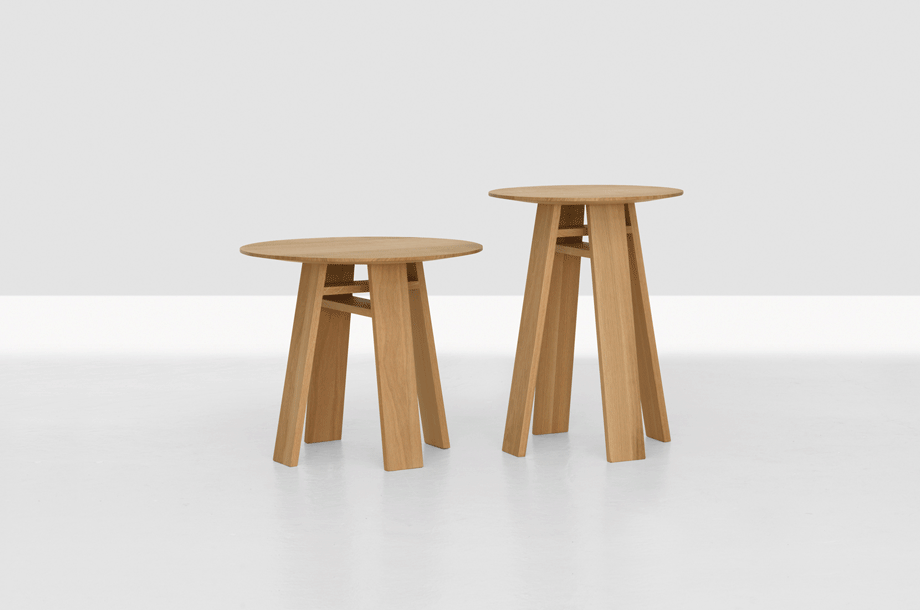 The BONDT family of tables has the seemingly thin table top balanced on two trestles in an exciting contrast with broad planks. The product program comprises dining tables as well as desks and an array of various side tables. The variability of the BONDT family is amply demonstrated by these side tables that can be nicely grouped into pleasant arrangements given their different leg versions, heights and table top sizes.