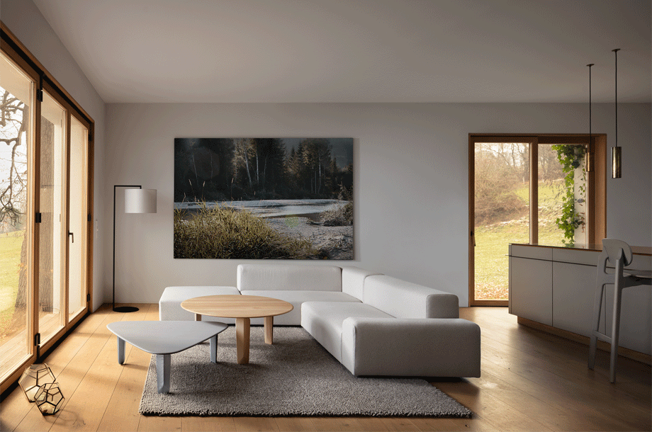 Inspired by and abstracted from African masks, precision cut table legs have been created to carry the table top. The cut diamonds of solid wood appear sculpturally powerful and at the same time seem to float. The four archetypal shapes of the table top invite a geometric interplay: Triangle, circle, rectangle and free form take over the design of the room. Due to the two heights, different shapes can be combined and overlapped, creating exciting formations.