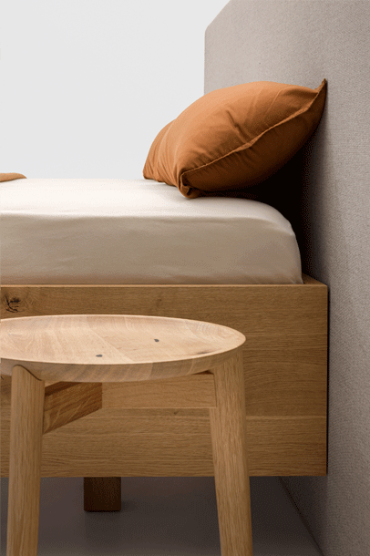 The purist design of the SIMPLE bed family puts the living material in the foreground. The lightness of the construction is enhanced by the floating frame.