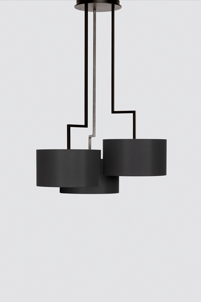 The desire for simplicity and the pleasure in pure design led to a geometrical abstraction of natural branch forms. The NOON range of lamps is rigidly constructed, the textile lampshades give a soft light. The matt black or matt white powder coated finish gives the iron a soft and warm appearance. The intrinsic value of the lamps is a product of material and hand-crafted details.