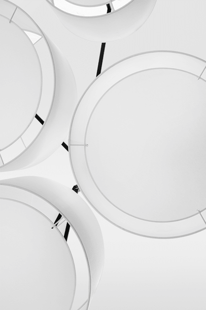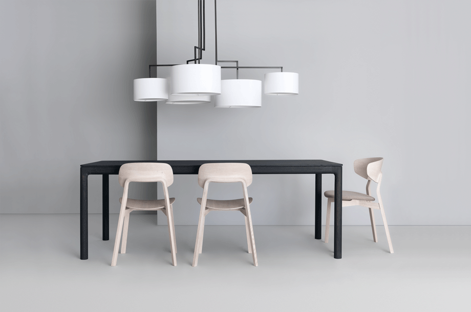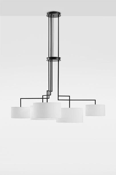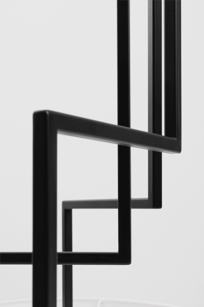 The desire for simplicity and the pleasure in pure design led to a geometrical abstraction of natural branch forms. The NOON range of lamps is rigidly constructed, the textile lampshades give a soft light. The matt black or matt white powder coated finish gives the iron a soft and warm appearance. The intrinsic value of the lamps is a product of material and hand-crafted details.