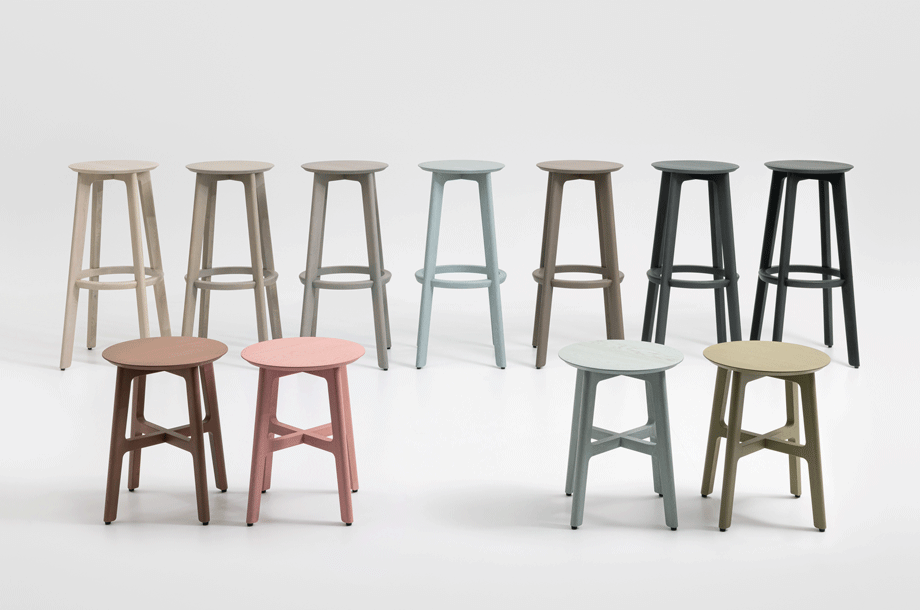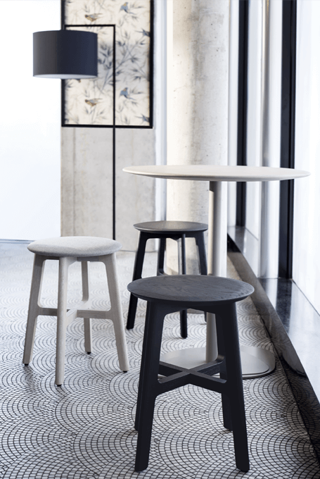 The ensemble of the 1.3 Collection comprises chair, stool and bar stool. The most outstanding feature of this delicate, light 1.3 STOOL and 1.3 BAR is the wafer-thin impression made by the fine contours of seat. It looks if it is floating on air. Chair, stool and bar stool also have the visual softness of “Pad” optic. Space-saving shape and stable construction give this ensemble big city flair – in small restaurants, snack bars, bars and bistros.