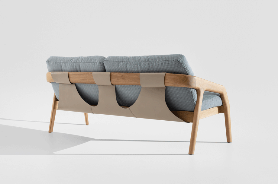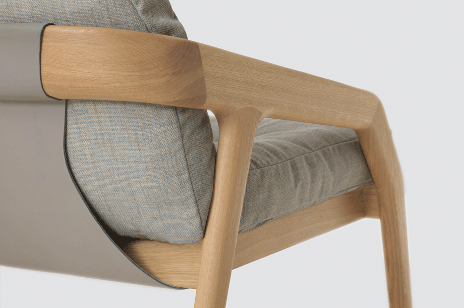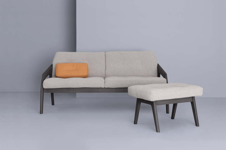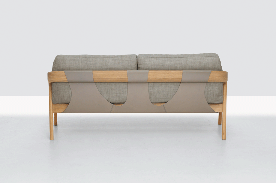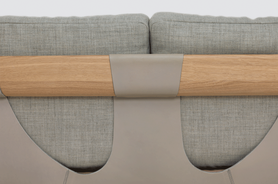 It is Friday evening and you can make yourself comfortable on the sofa, maybe enjoy a drink. The subtly formed wooden frame of FRIDAY has a back section of butt leather and the design is reminiscent of a pattern cut. Soft cushions lie gently in the frame. A sophisticated technical construction of springaction and seat cushion offers superb comfort designed to last a lifetime. FRIDAY can be produced in a great variety of woods, leathers and cushion fabrics.