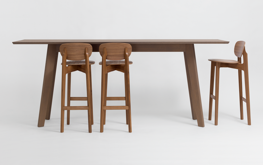 The high table CENA HIGH shows great strength of character. The bevelled table top gives it a lightness and dynamic contrasting nicely with the reassuringly solid trestle. CENA HIGH table tops are available in rectangular, square and round, in hight 110 cm. With regard to special dimensions.