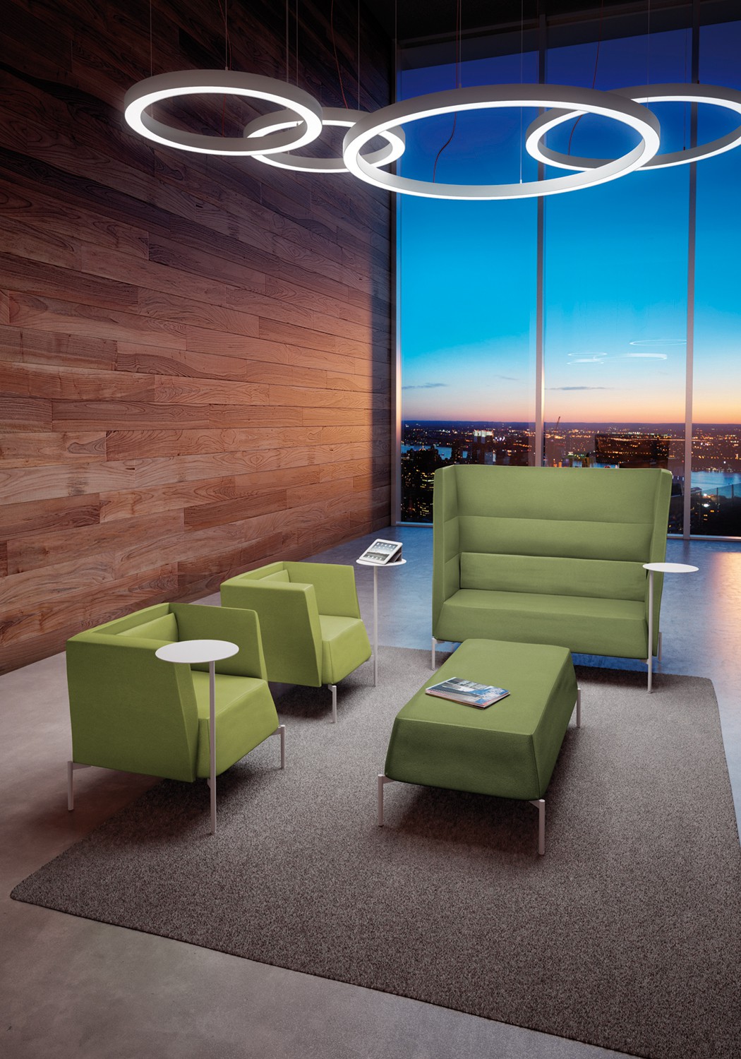 The high and medium back versions create meeting/work zones and offer an excellent acoustic comfort.
