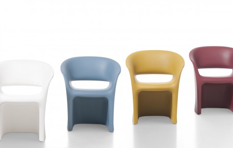 Tub chair in non-porous polyethylene, both for indoor and outdoor use, obtained by rotational molding process, in the colors white-light blue-terracotta-mustard-burgundy- lava.