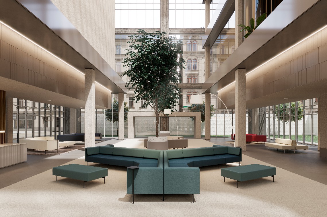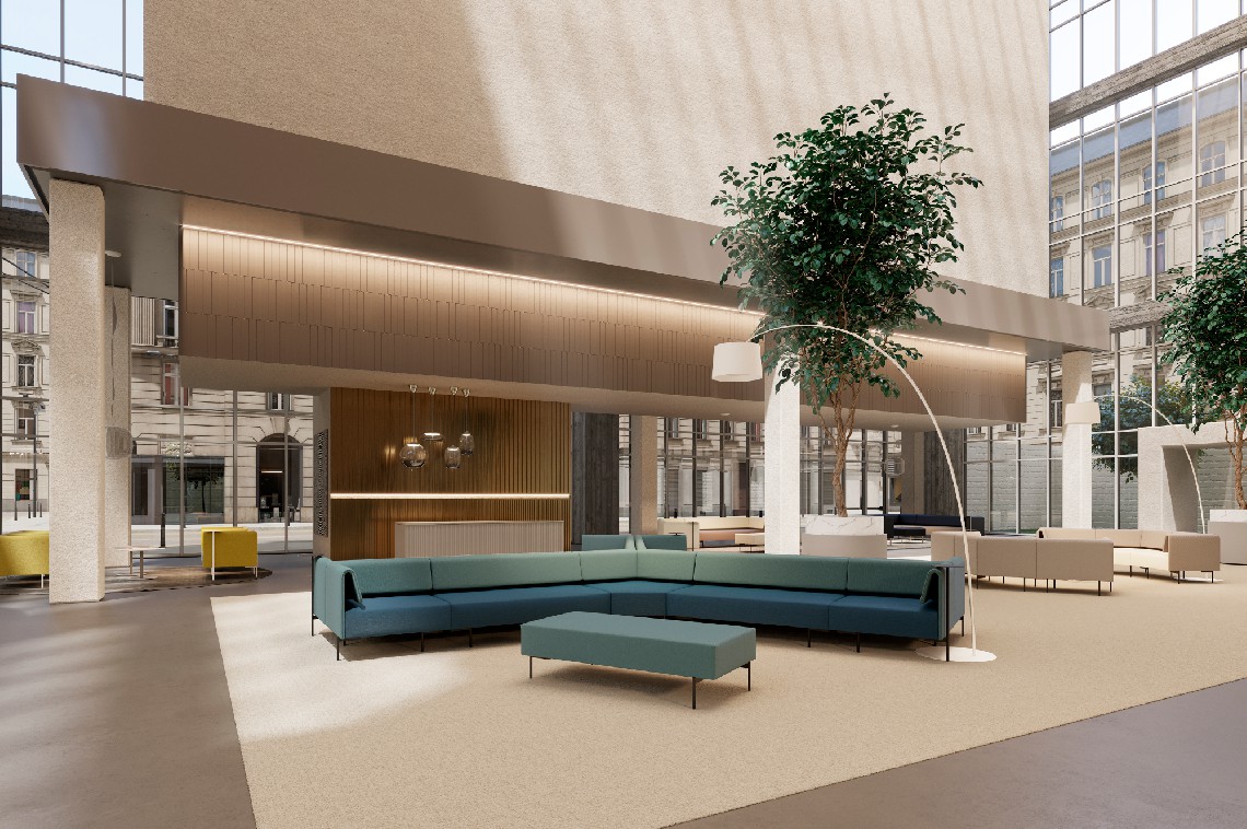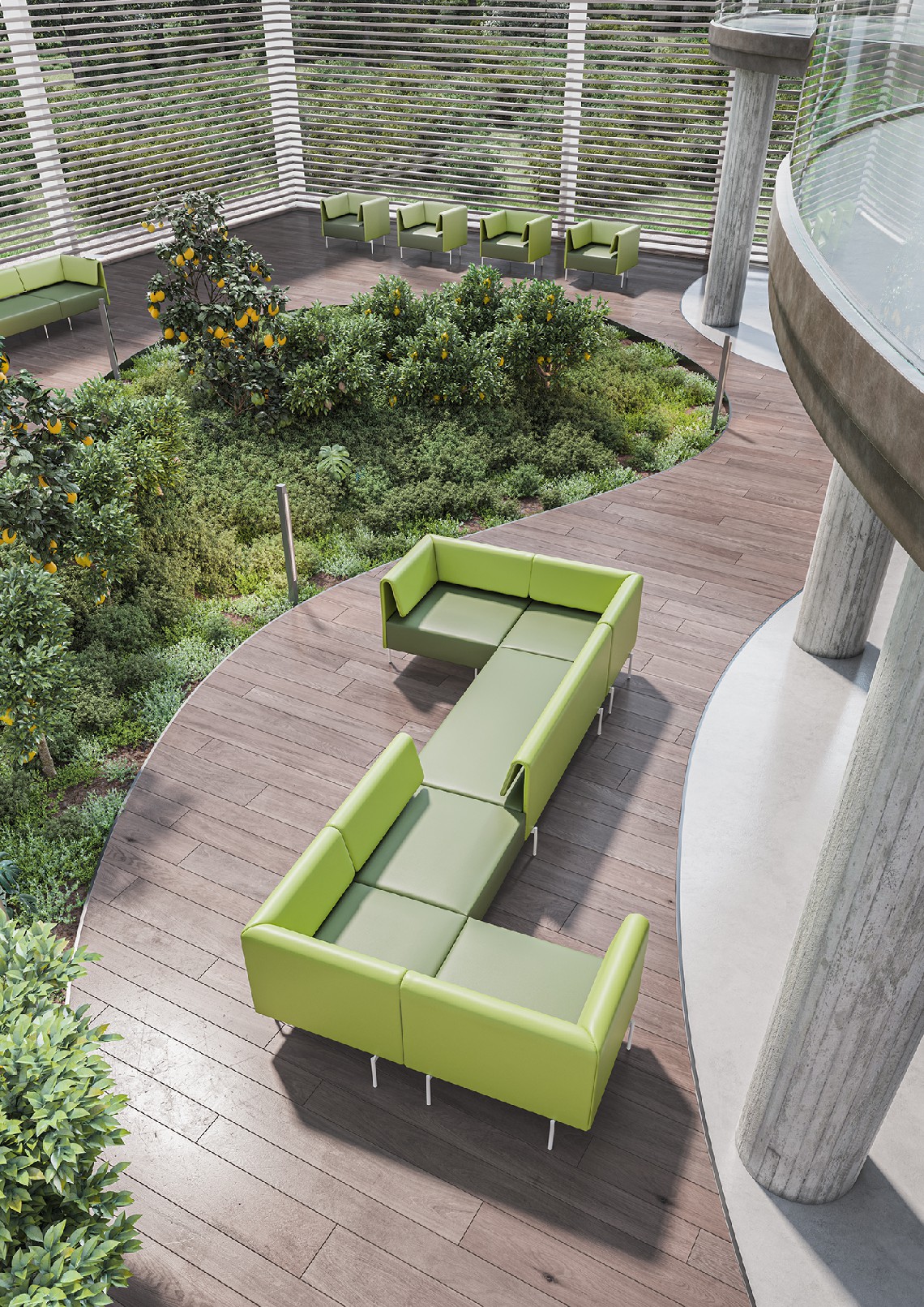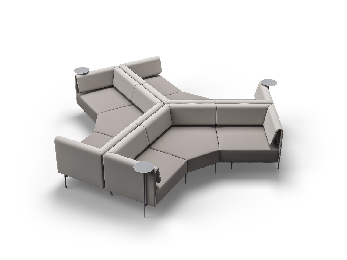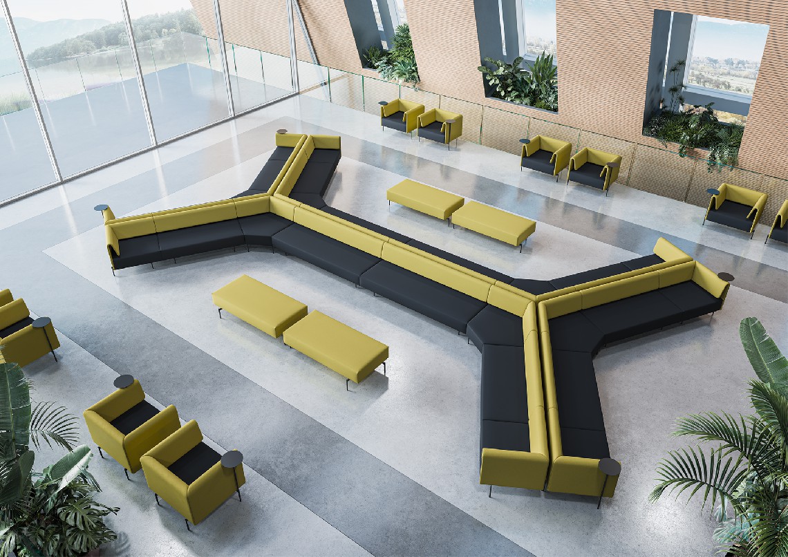 Modular system with flat or quilted backrest, made by fixed well defined or modular units that can be combined by creating linear or angular solutions. Suitable for big waiting areas and home environment.