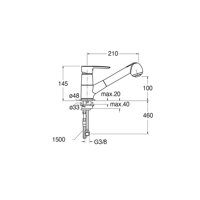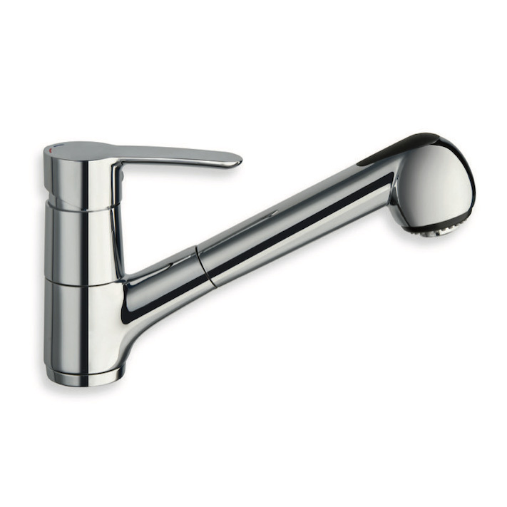 Miscelatore monocomando cucina, bocca orientabile, monoforo da piano, con miscelazione meccanica frontale e doccetta estraibile 2 getti, H. 145 mm